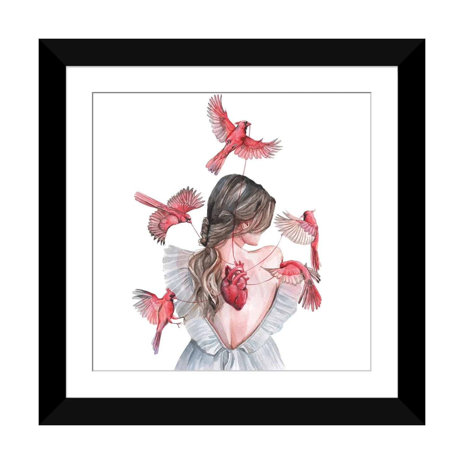 iCanvas "Woman And Birds Red Cardinal" by Yana Anikina Framed Canvas Print