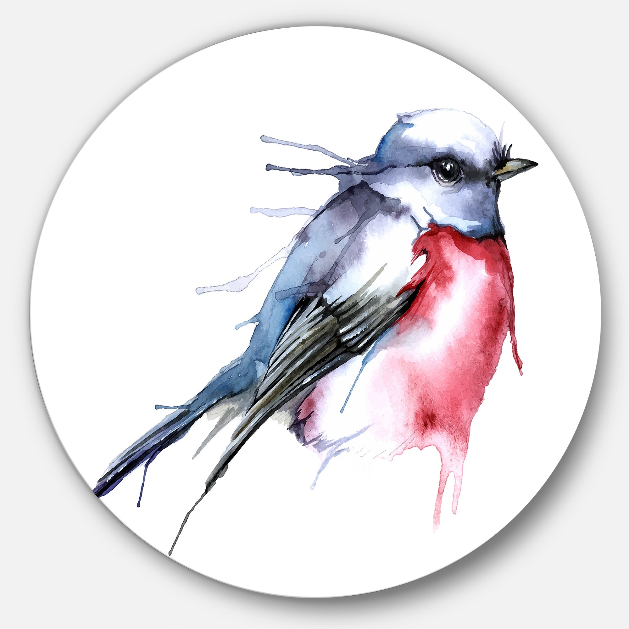 Designart 'Bird in Blue and Red' Watercolor Animal Round Wall Art
