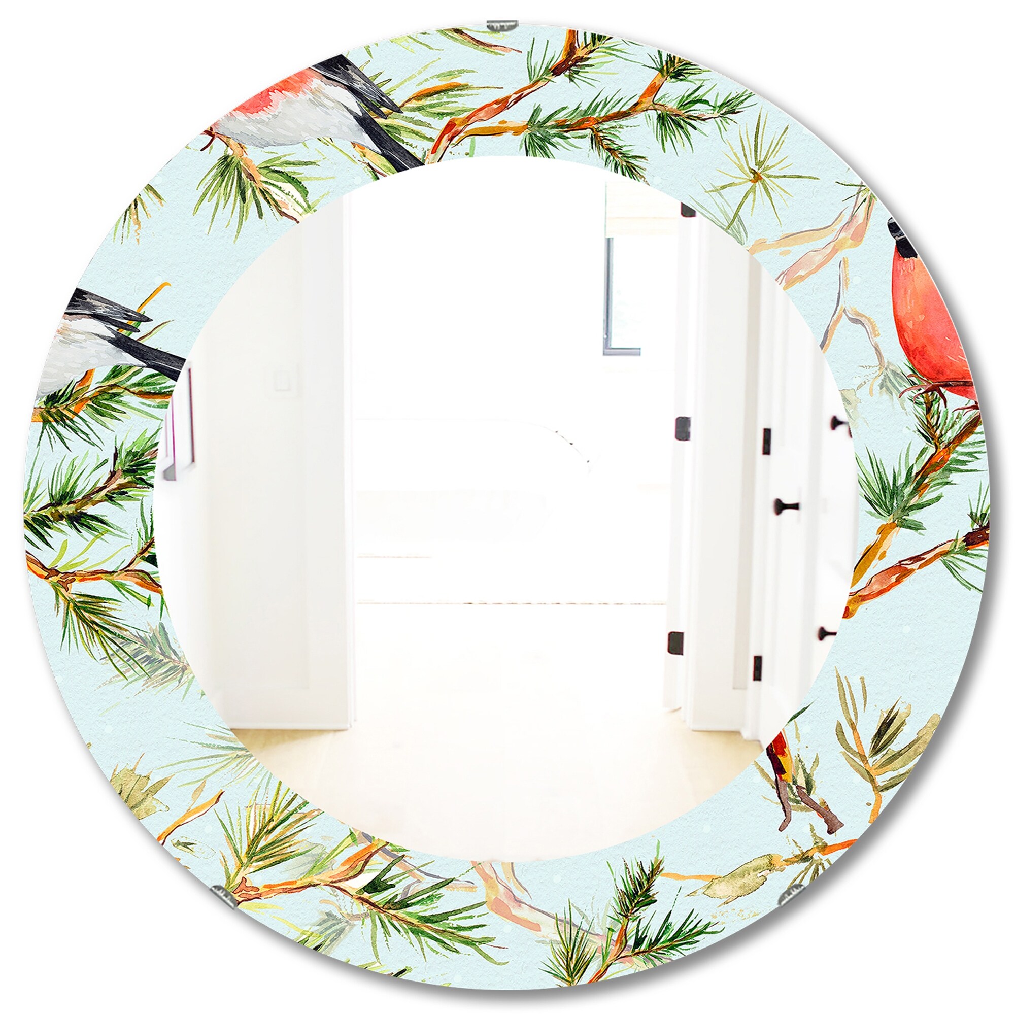 Designart 'Little Bird With Red Chest on Pine Branch' Printed Traditional Oval or Round Wall Mirror