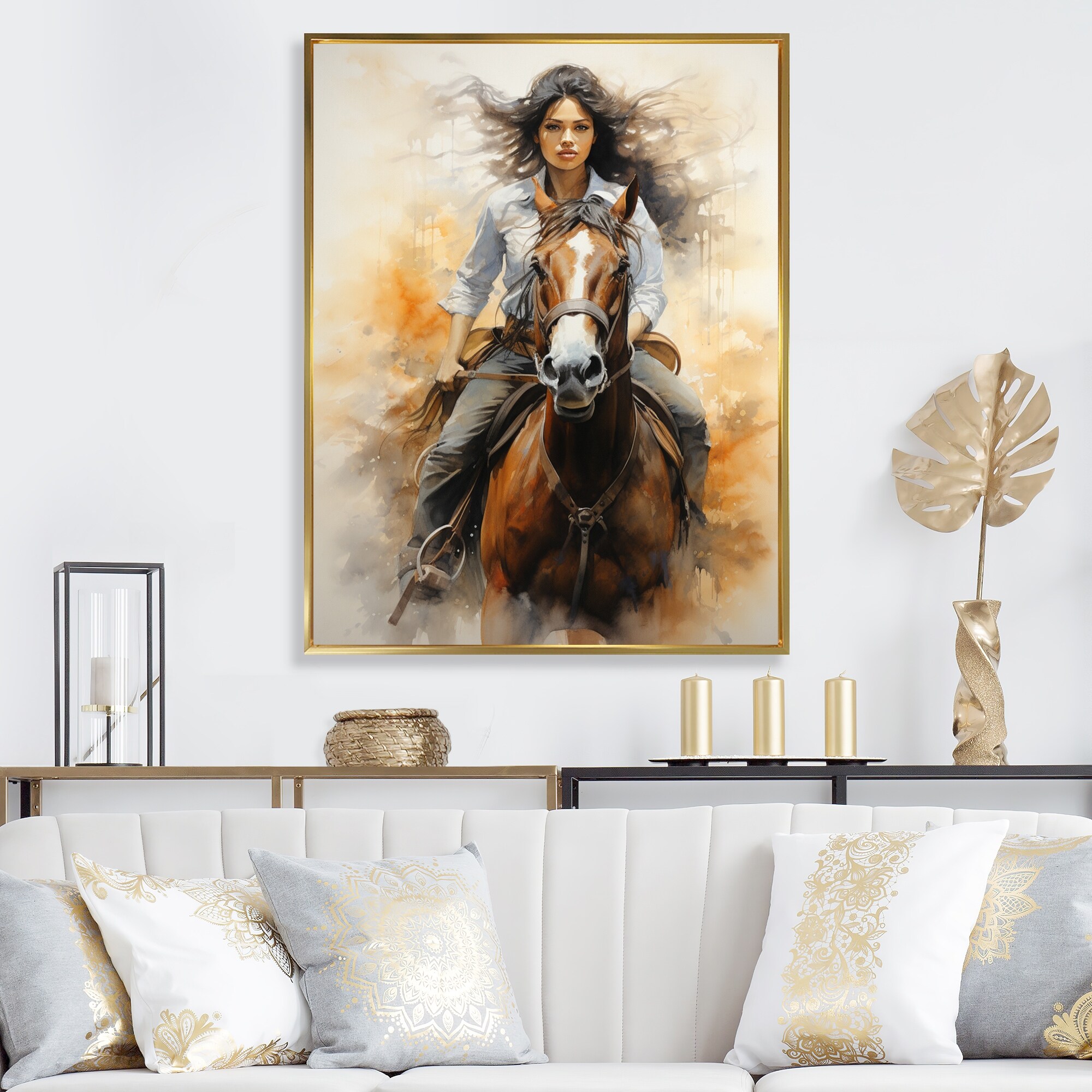 Designart "Cowgirl Riding With Grace" Cowgirls Framed Canvas Art Print