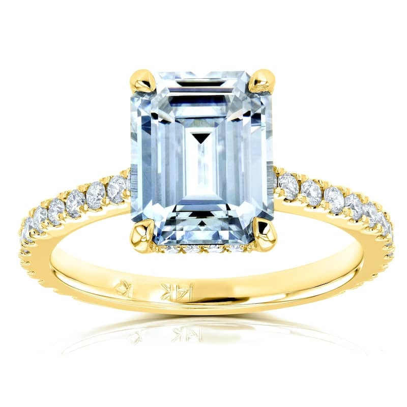 Annello by Kobelli 14k Gold 2 7/8ct TGW Emerald-cut Forever One Moissanite and Diamond Engagement Ring