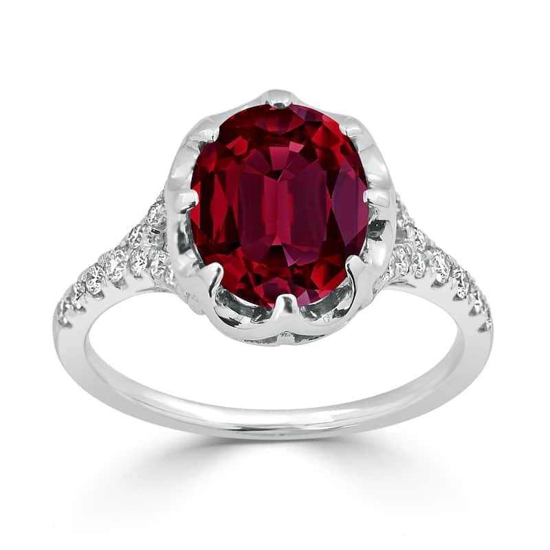 Auriya Vintage 2 7/8ct Oval Red Ruby and Diamond Ring 1/4cttw 18K Gold