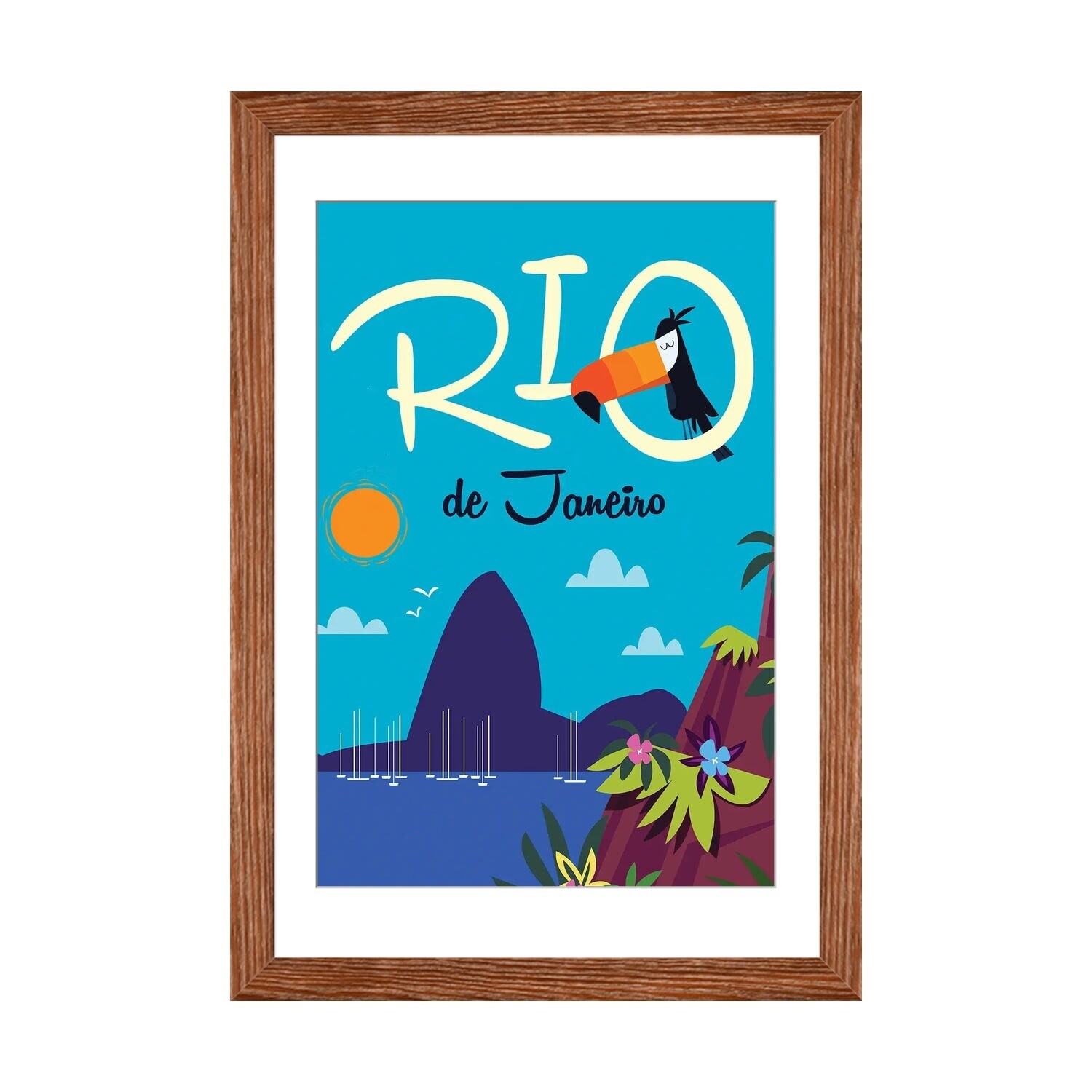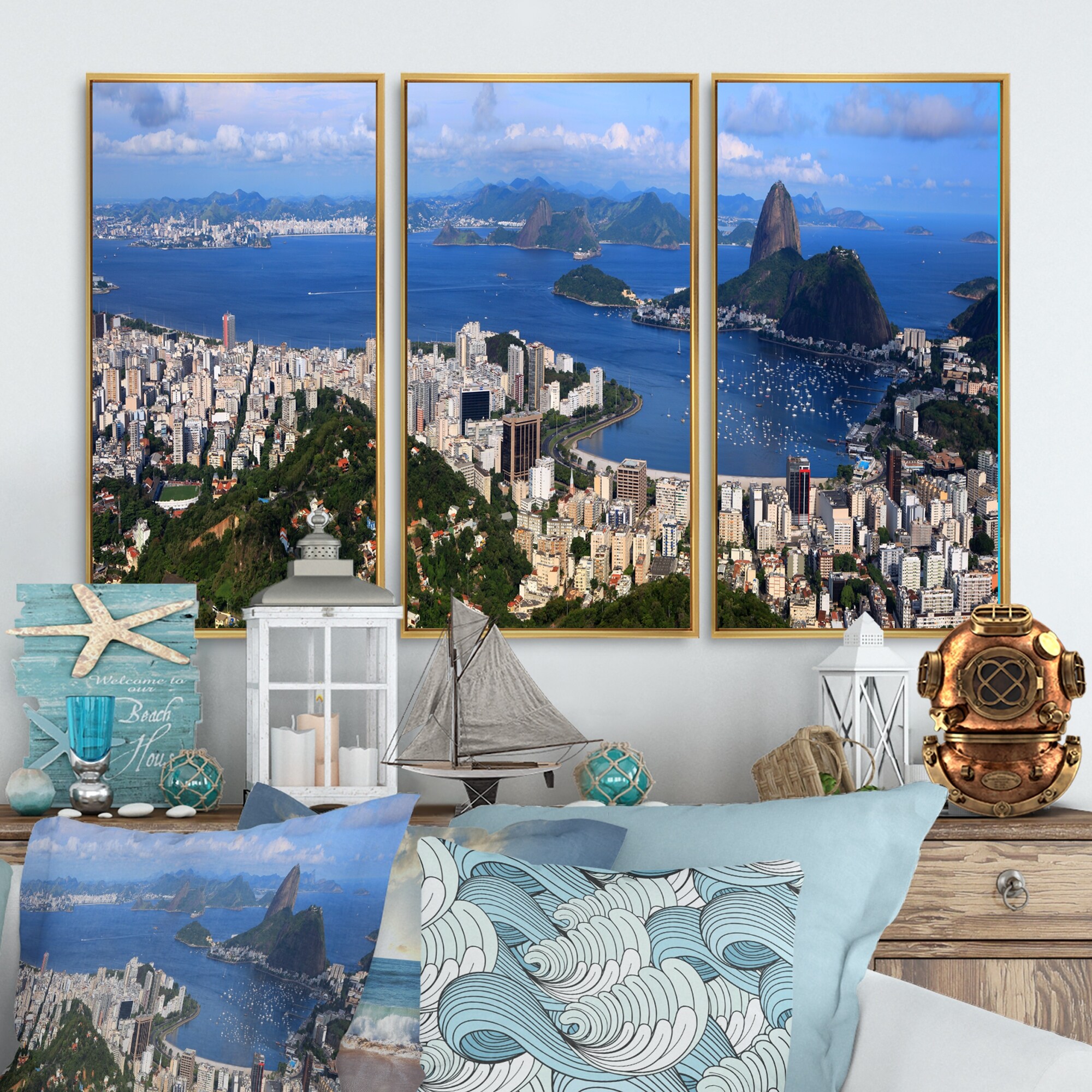 Designart "Rio De Janeiro Panorama" Landscape Framed Wall Decor Set of 3 - 4 Colors of Frames