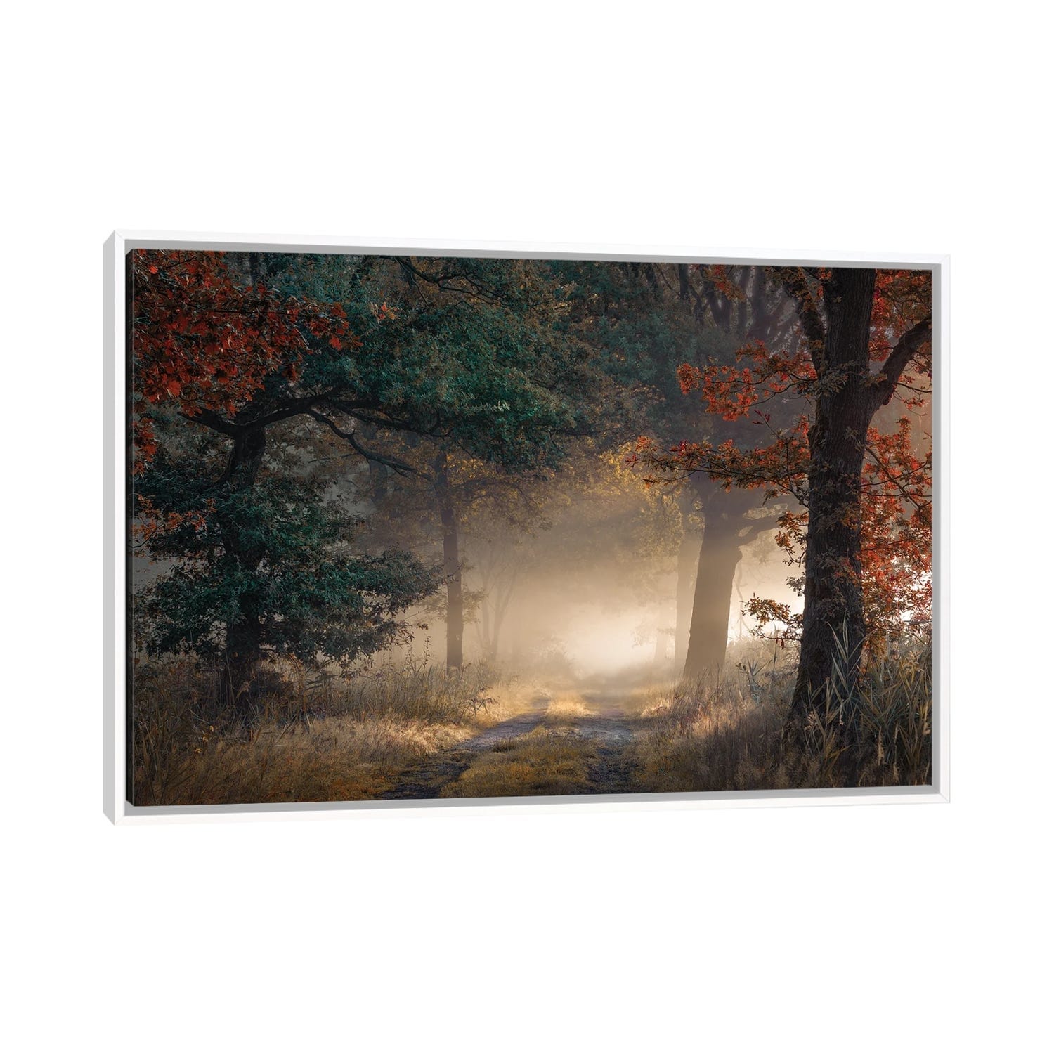 iCanvas "Beginning Of Autumn in A Foggy Forest" by Rob Visser Framed Canvas Print