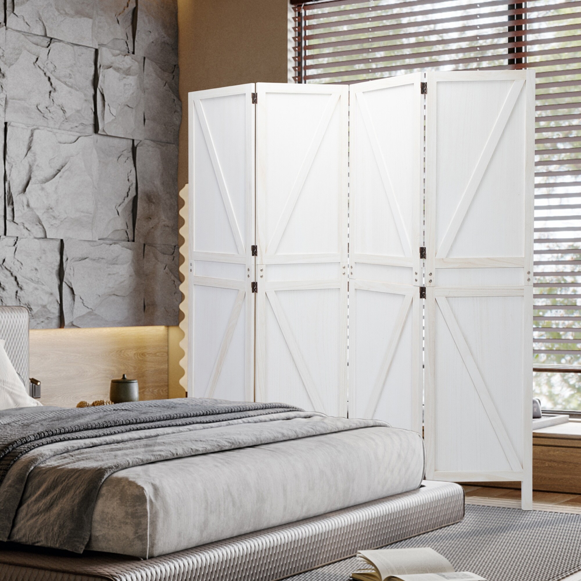 5.6 Ft Tall Wood Room Divider;  4-Panel Folding Privacy Scr