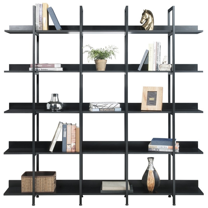 Black Vintage Industrial Style 5 Tier Bookshelf Open Bookcase Room Divider, 70.87''L*11.81''W*70.87''H, 82.47LBS