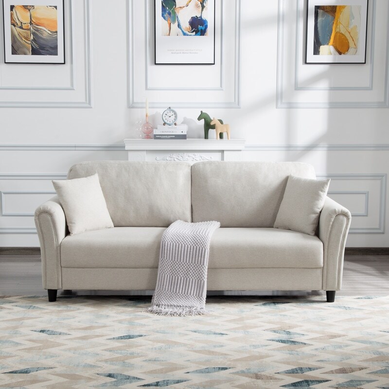 81.5" Modern Sofa Couch, 3-Seater Linen Upholstered Sofa with 2 Pillows Included and Rolled Arms for Living Room