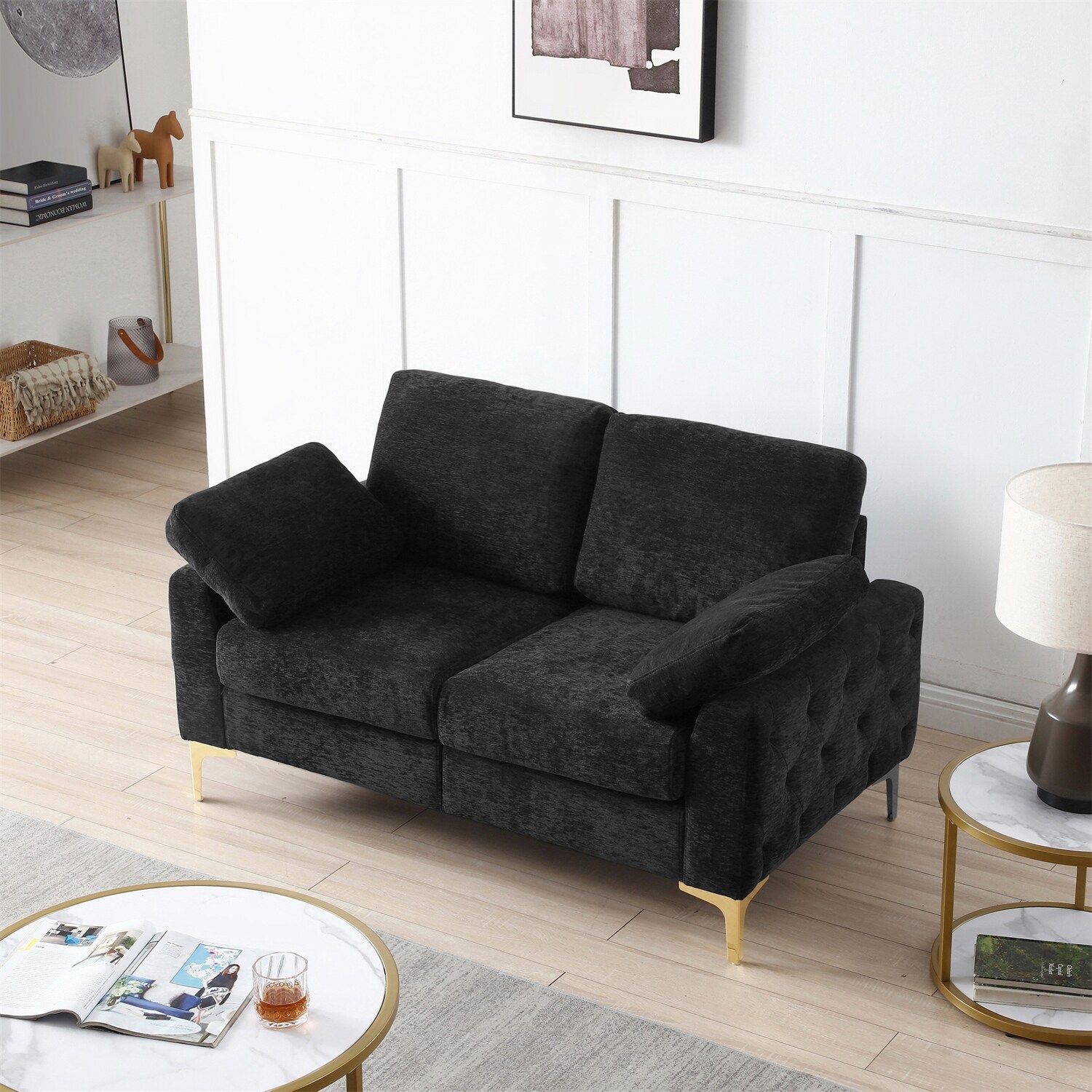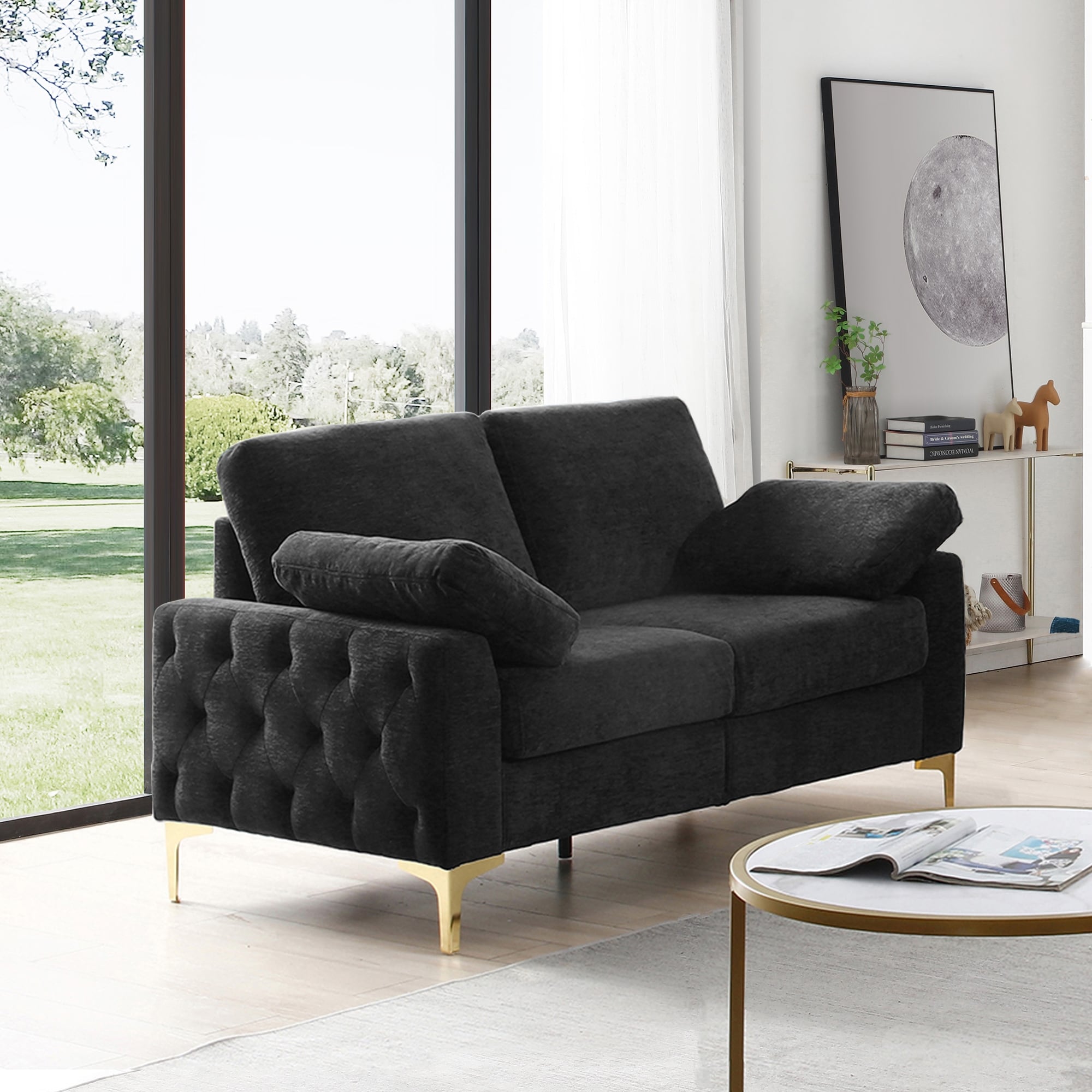 Diamond Tufted 2 Seater Couch Chenille Fabric Upholstered Loveseat Sofas with Sturdy Metal Legs and 2 Arm Pillows