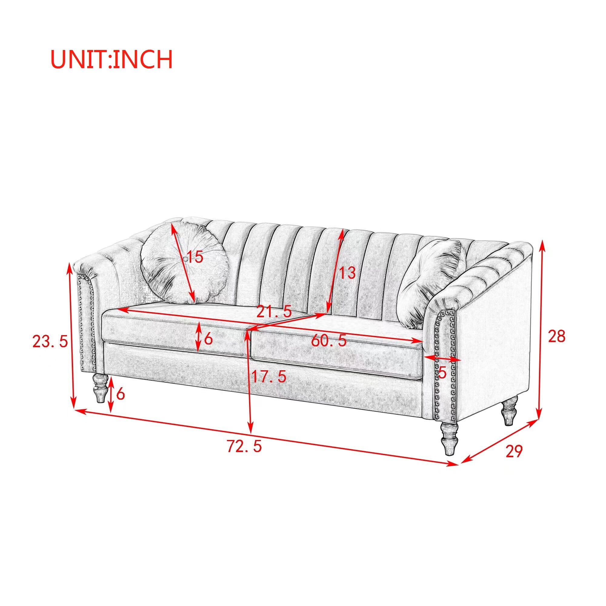 Velvet Upholstered Sofa Couch, 3 Seater Tufted Loveseat Couch with Pillows, Sleeper Sofa for Living Room, Compact Living Space