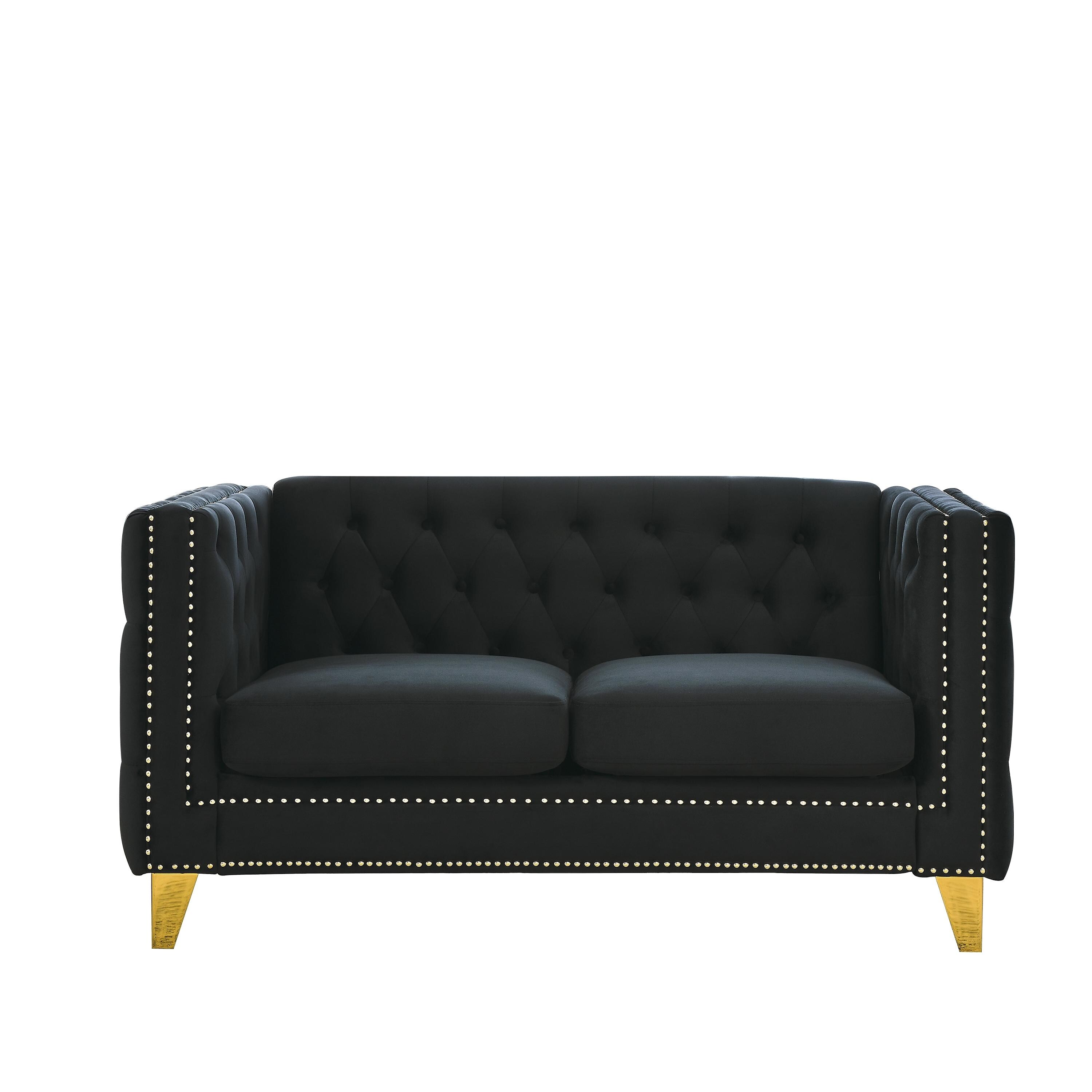 Velvet 2-Seater Sectional Sofa Tufted Upholstered Loveseats w/Nailhead