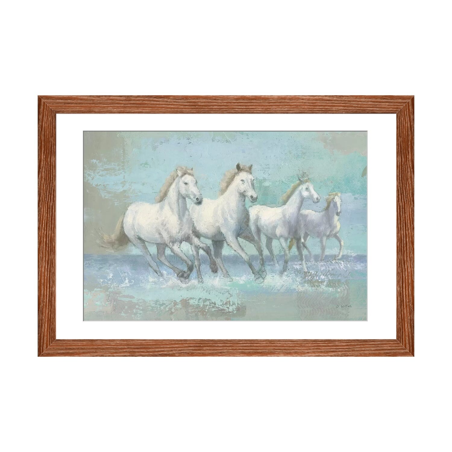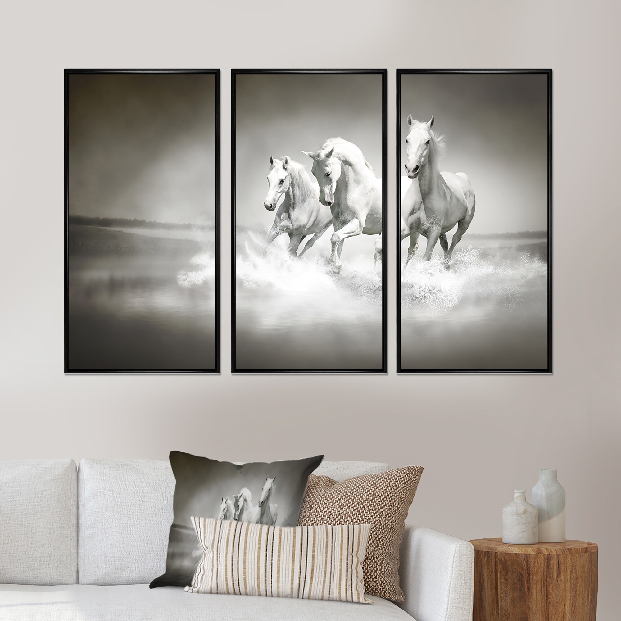 Designart "Horses Running Through Water" Animal Framed Art Set of 3 - 4 Colors of Frames