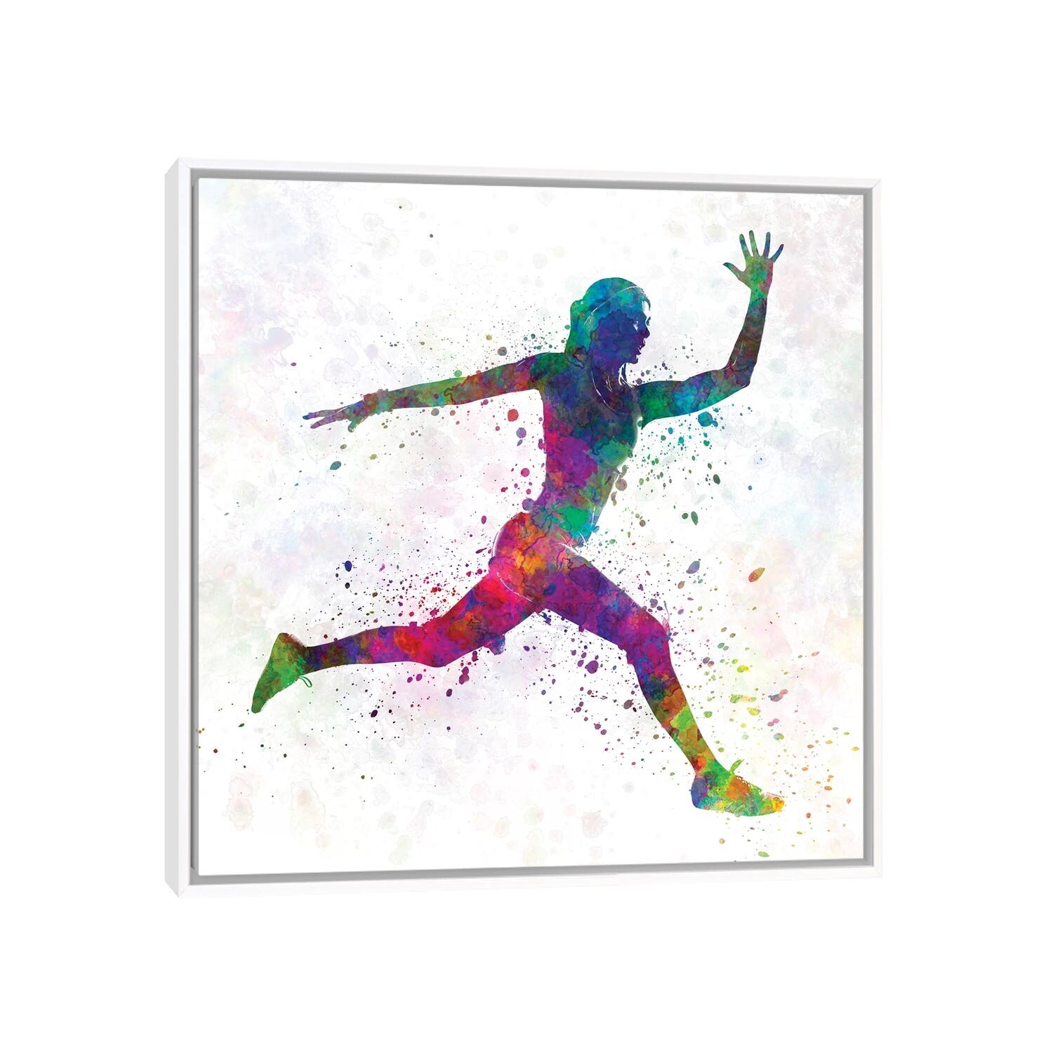 iCanvas "Woman Runner Running Jumping" by Paul Rommer Framed