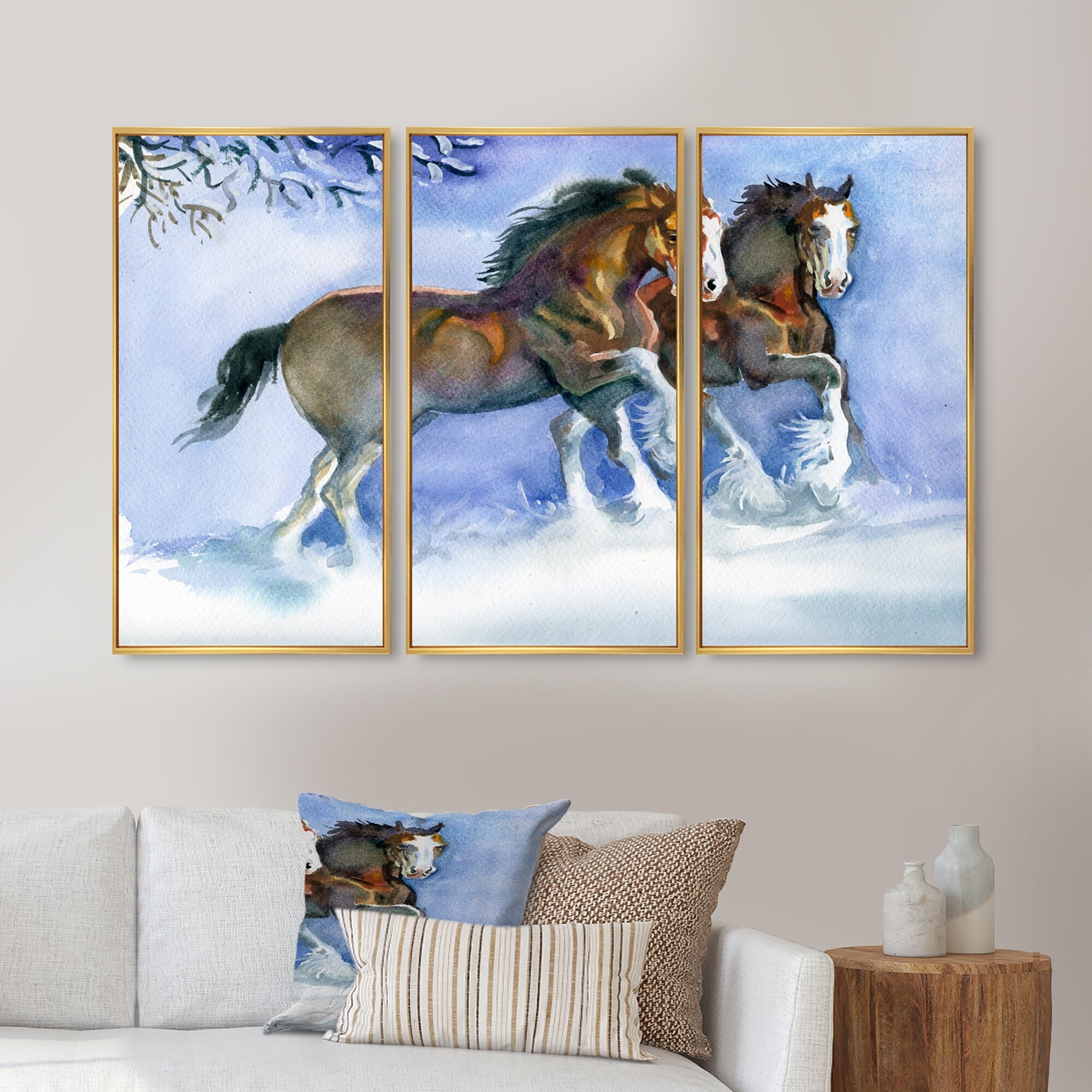 Designart "Horses Running in Winter" Farmhouse Framed Wall Decor Set of 3 - 4 Colors of Frames