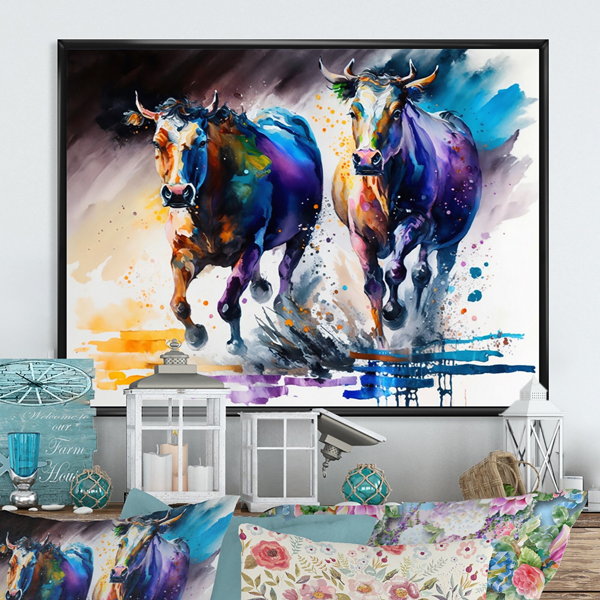 Designart "Cows Running I" Farmhouse Framed Canvas Art Print