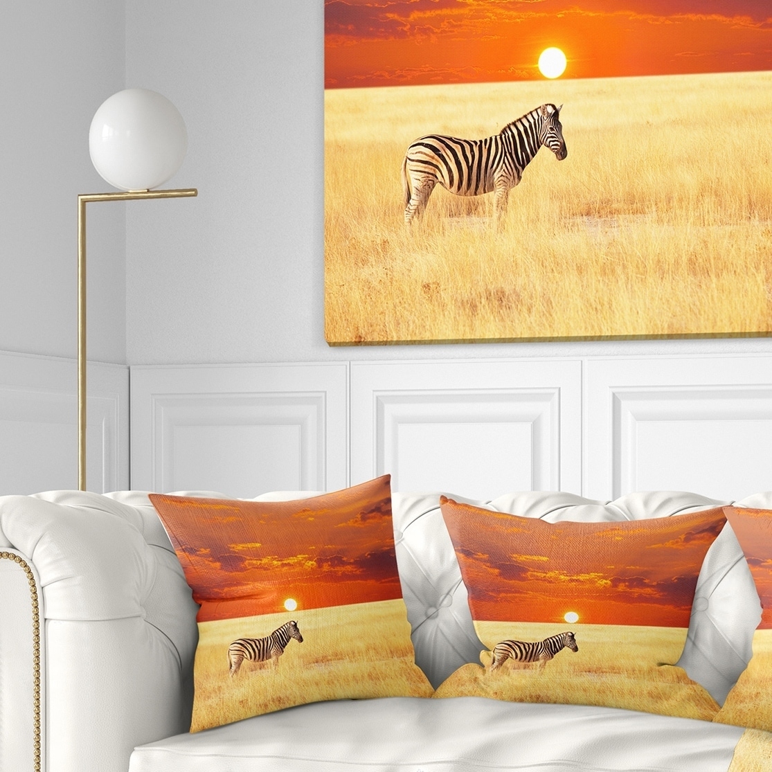 Designart 'Scenic African View with Zebra' Landscape Printed Throw Pillow