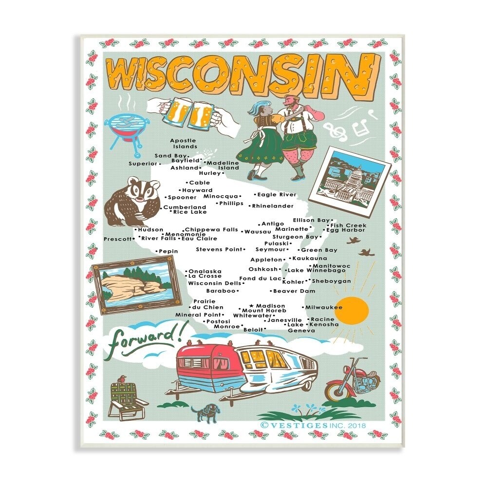 The Stupell Home Decor Wisconsin Pale Blue Illustrated Scenic Map Poster Wall Plaque Art, 10x15, Proudly Made in USA