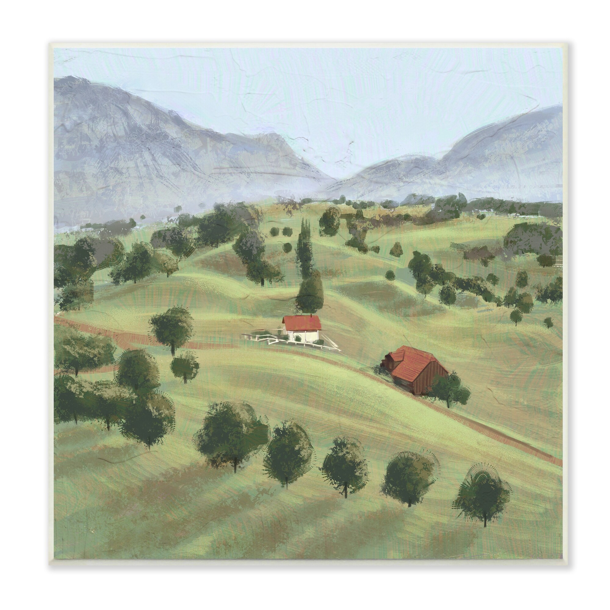 Stupell Industries Scenic Countryside Sloped Hills Distant Rural Cottages Wood Wall Art, Design by Ziwei Li - Green