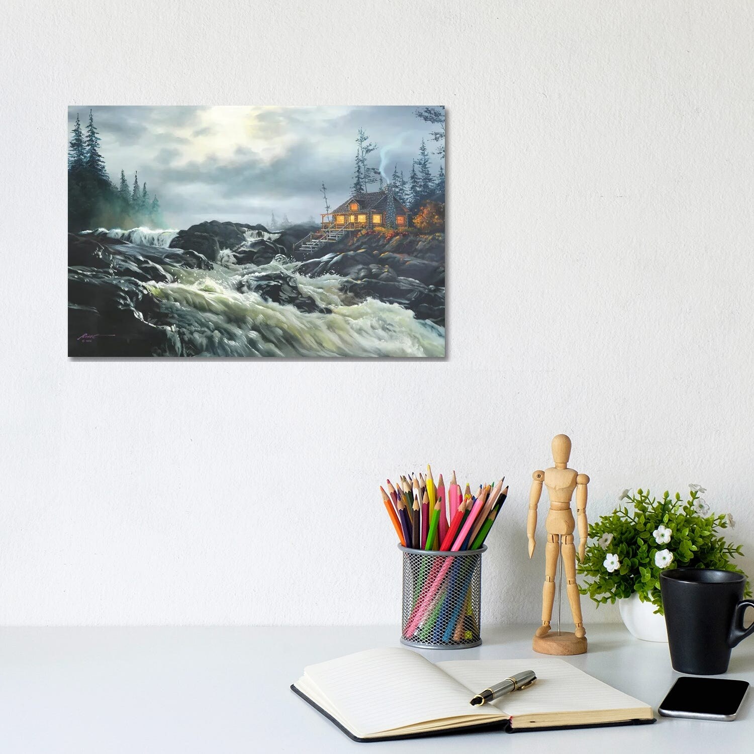 iCanvas "Scenic River And Cabin" by D. "Rusty" Rust Canvas Print
