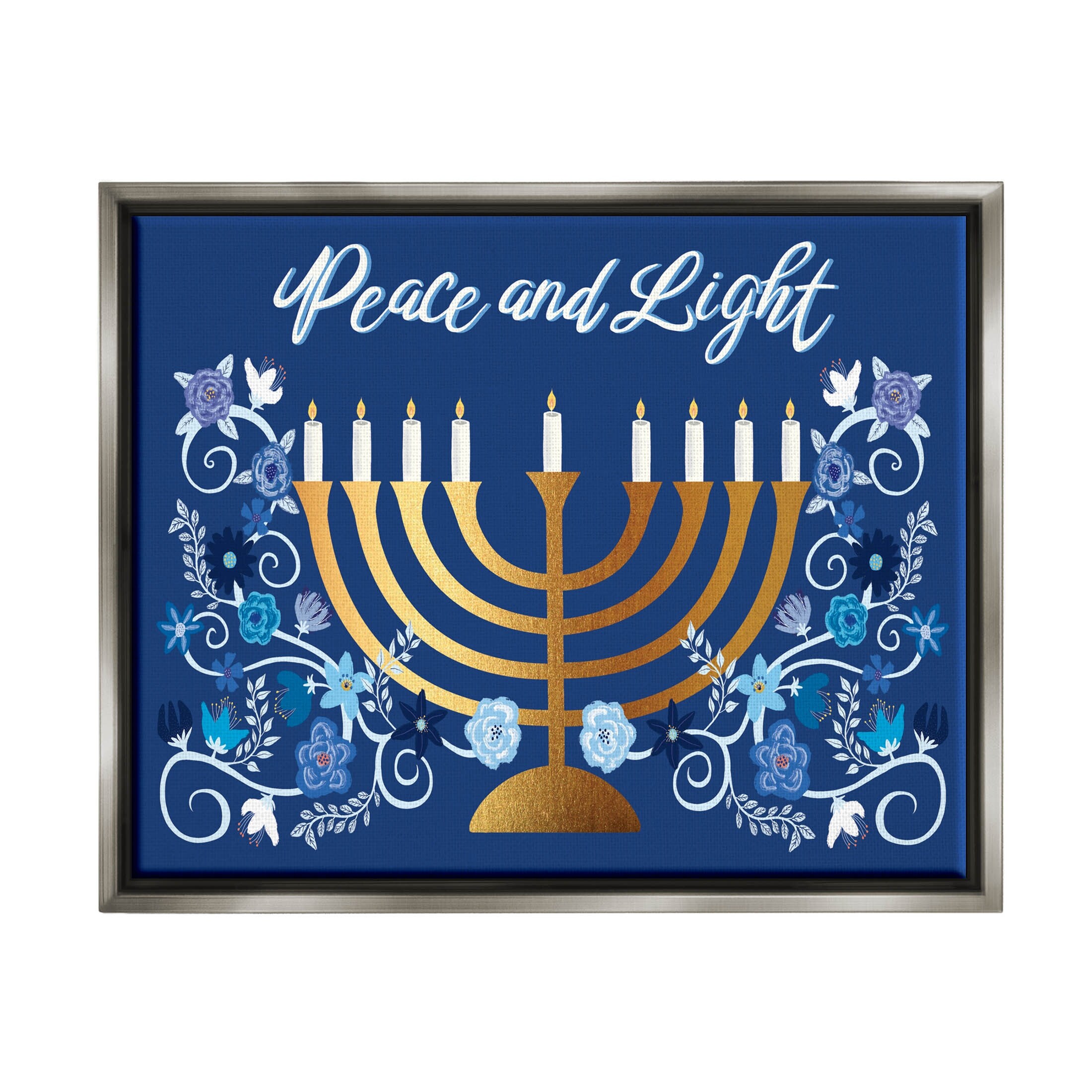 Stupell Industries Peace & Light Floral Hanukkah Menorah Floater Canvas Wall Art by Darlene Seale