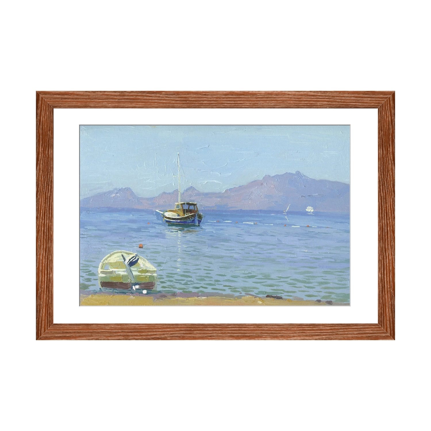Designart 'Impressionist Seascape With Little Ships II' Nautical & Coastal Print on Natural Pine Wood
