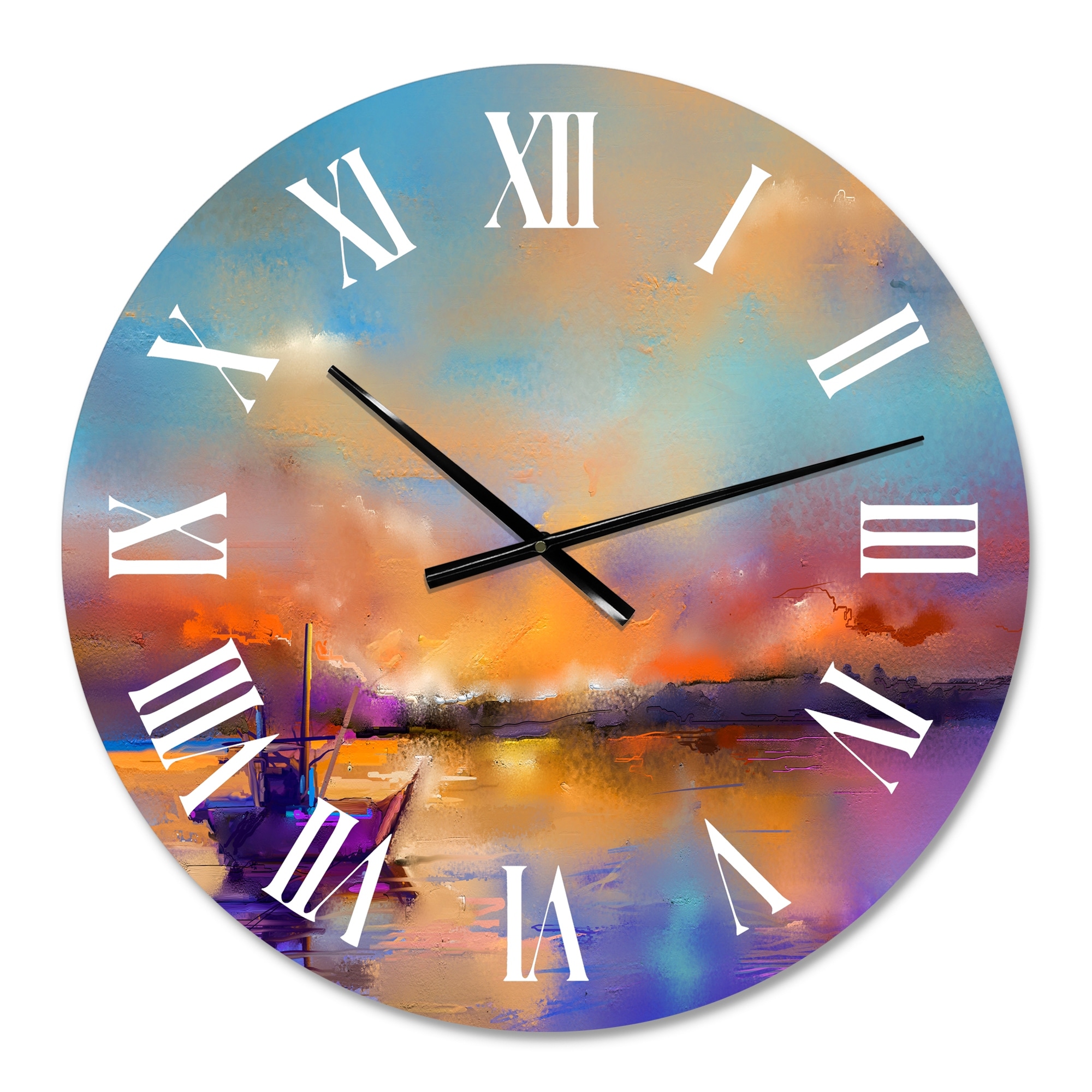 Designart 'Purple Sunset Seascape With Little Ship At the Horizon Horizon I' Modern wall clock