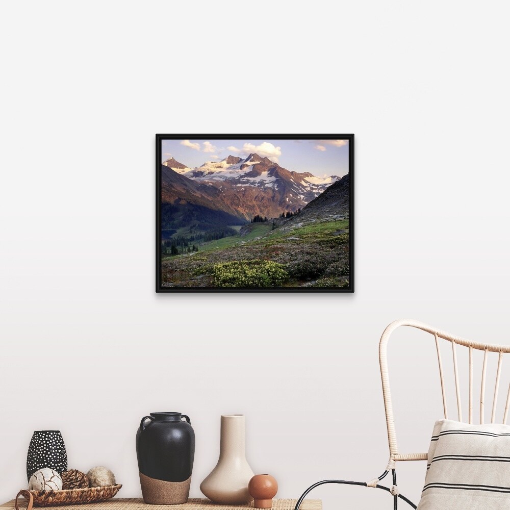 "Spilllimacheen Glacier from meadow basin of Silent Mountain, Canada" Black Float Frame Canvas Art