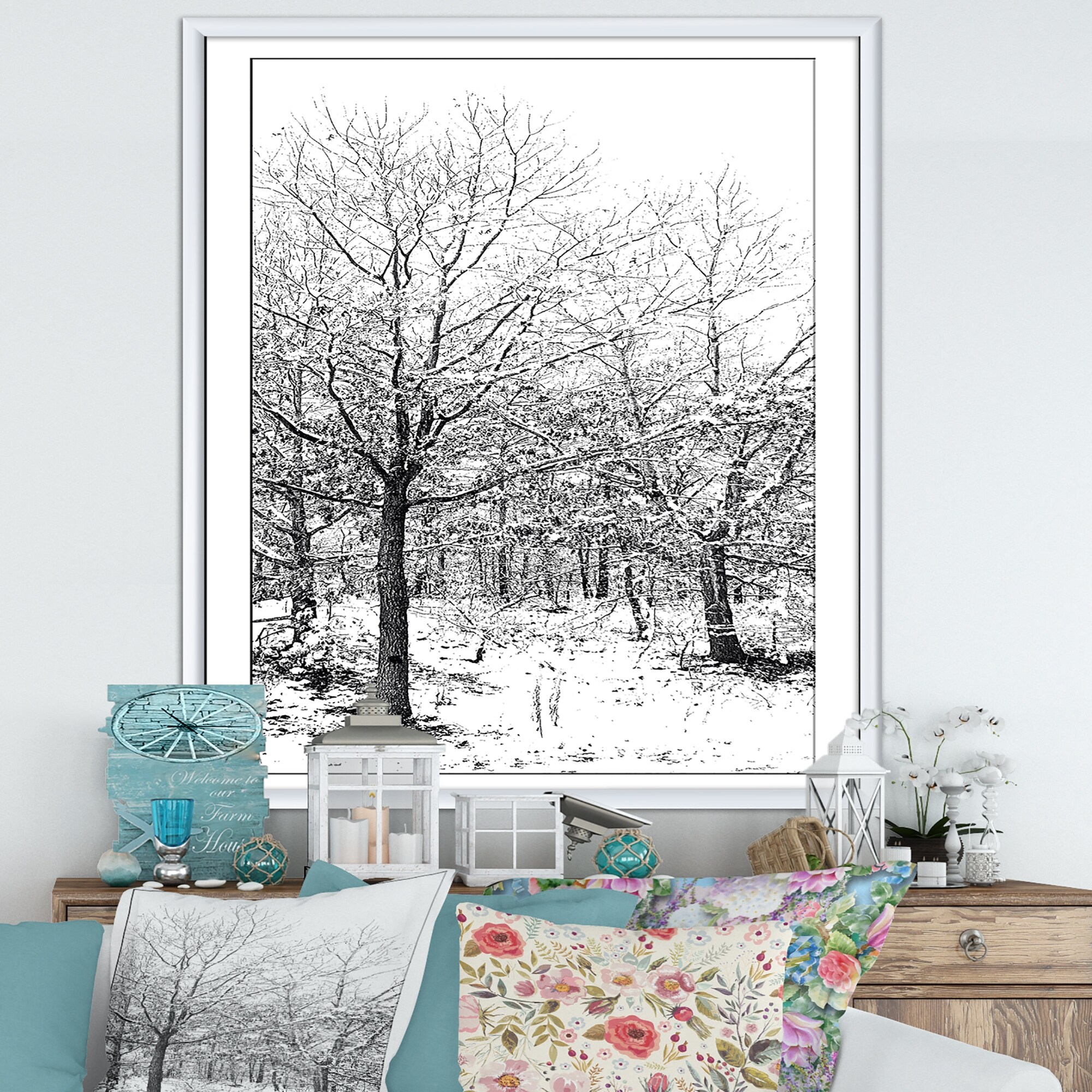 Designart "Winter Silent Woods IV" Winter Landscape Framed Wall Art Prints