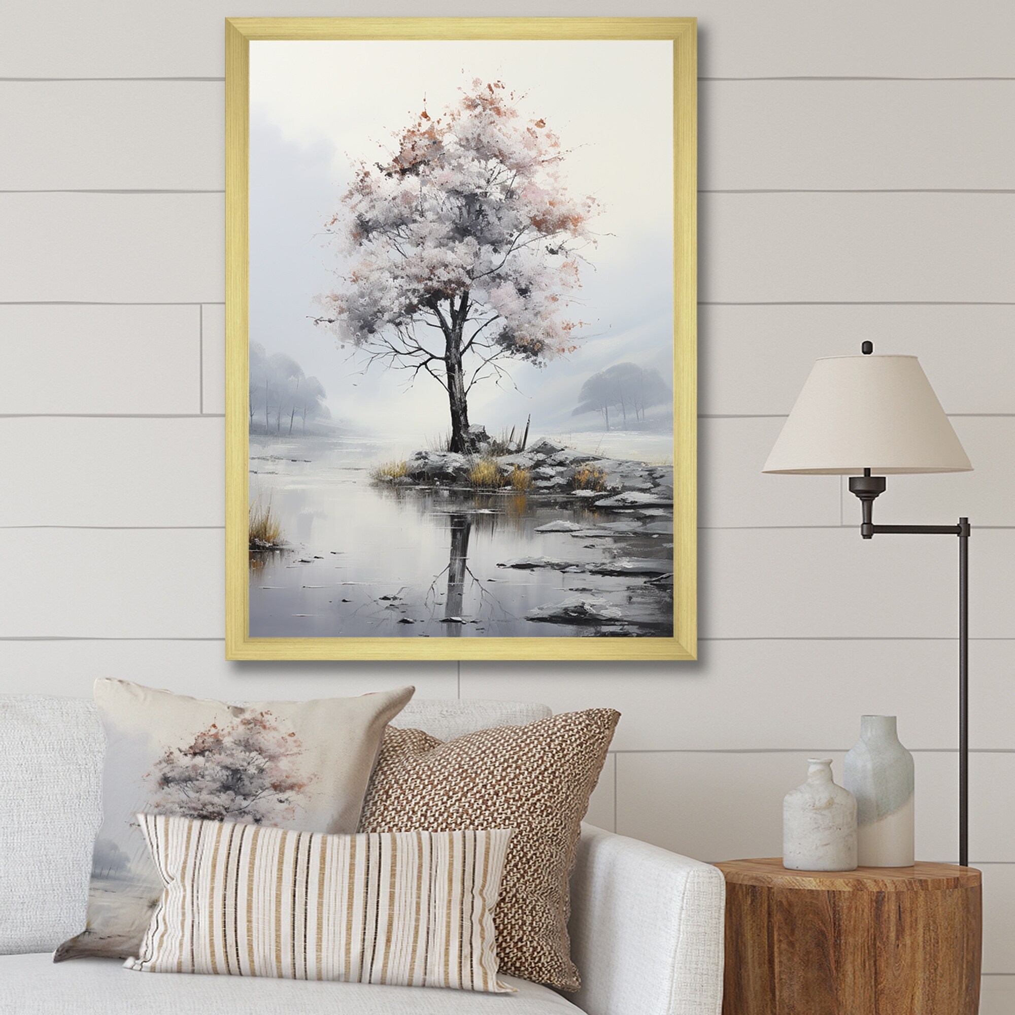Designart "Tree Monochrome Silent Whispers" Tree Monochrome Framed Wall Decor
