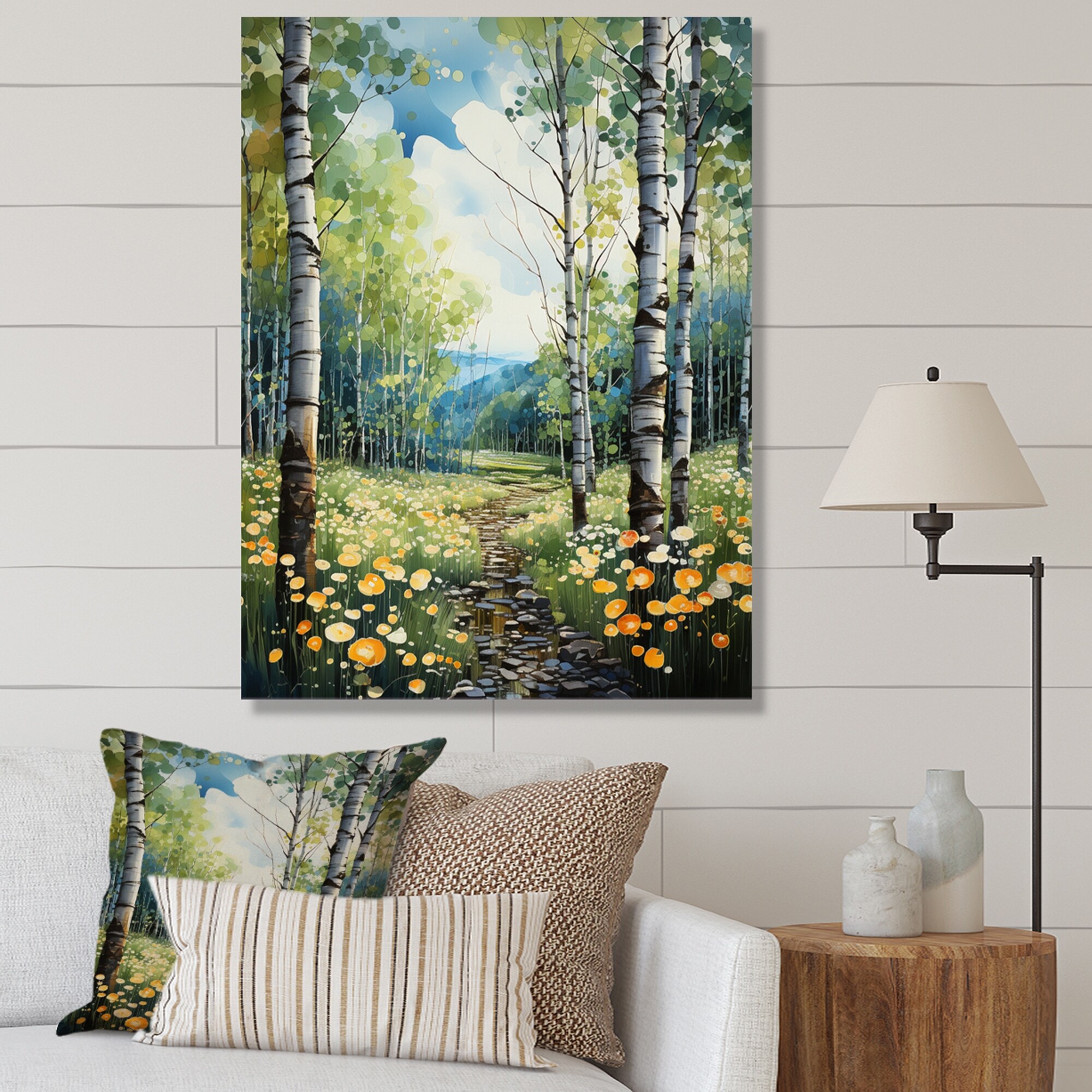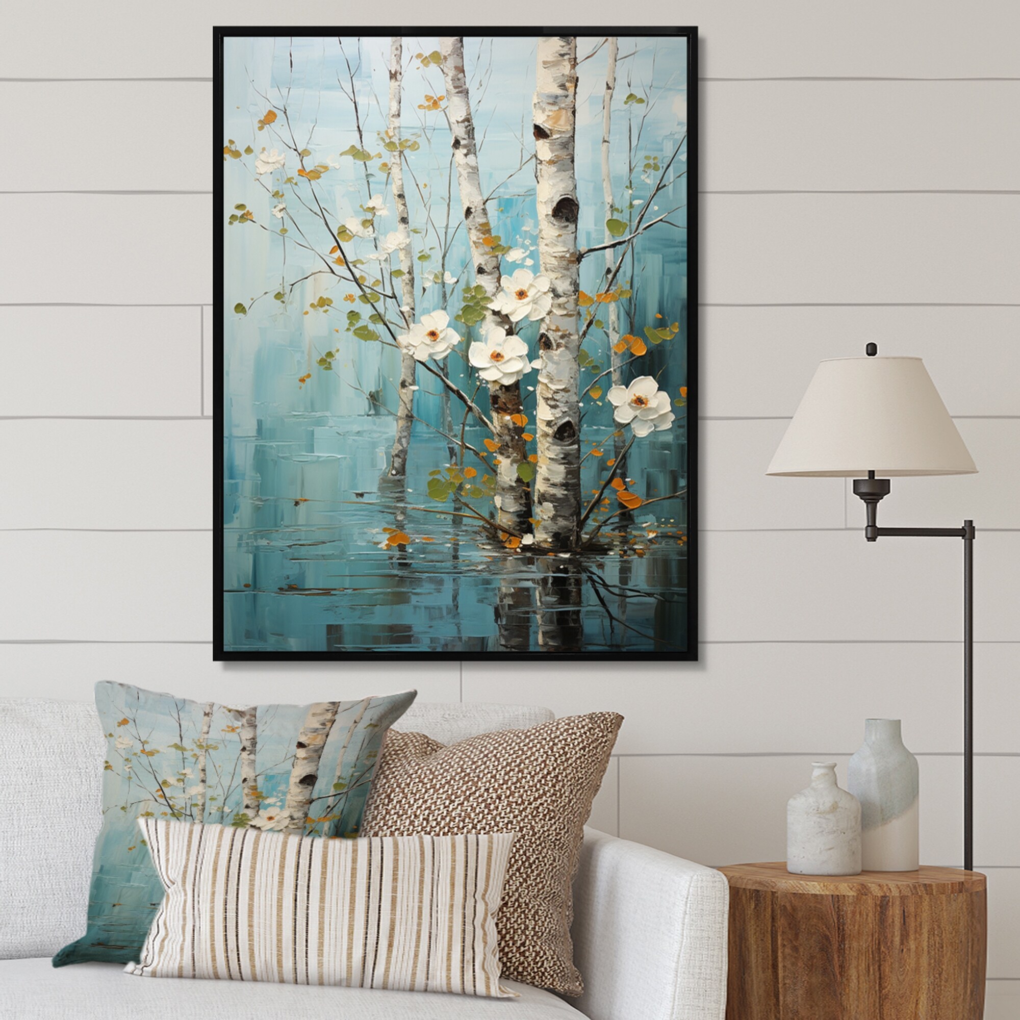 Designart "Birch Woods Silent Woods VI" Tree Birch Framed Wall Art Prints