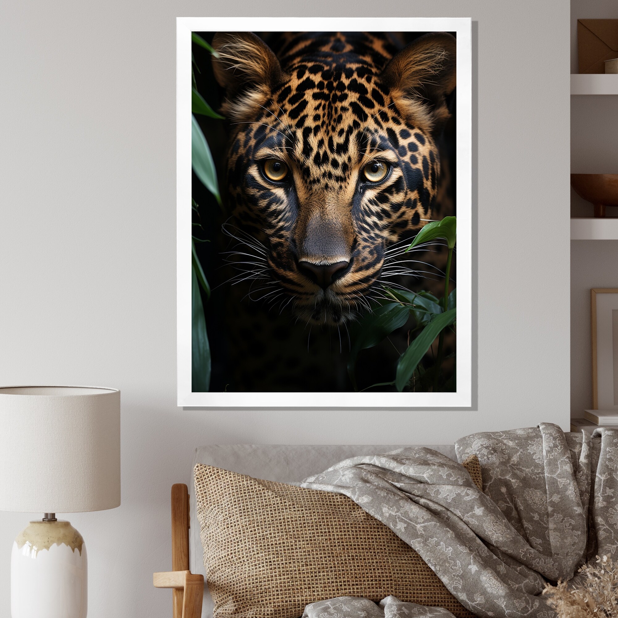 Designart "Leopard Silent Stalk I" Animals Leopard Framed Wall Art Living Room