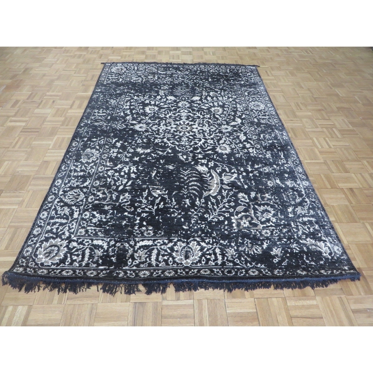 Hand Knotted Black Tabriz with Wool & Silk Oriental Rug (6' x 9'2") - 6' x 9'2"