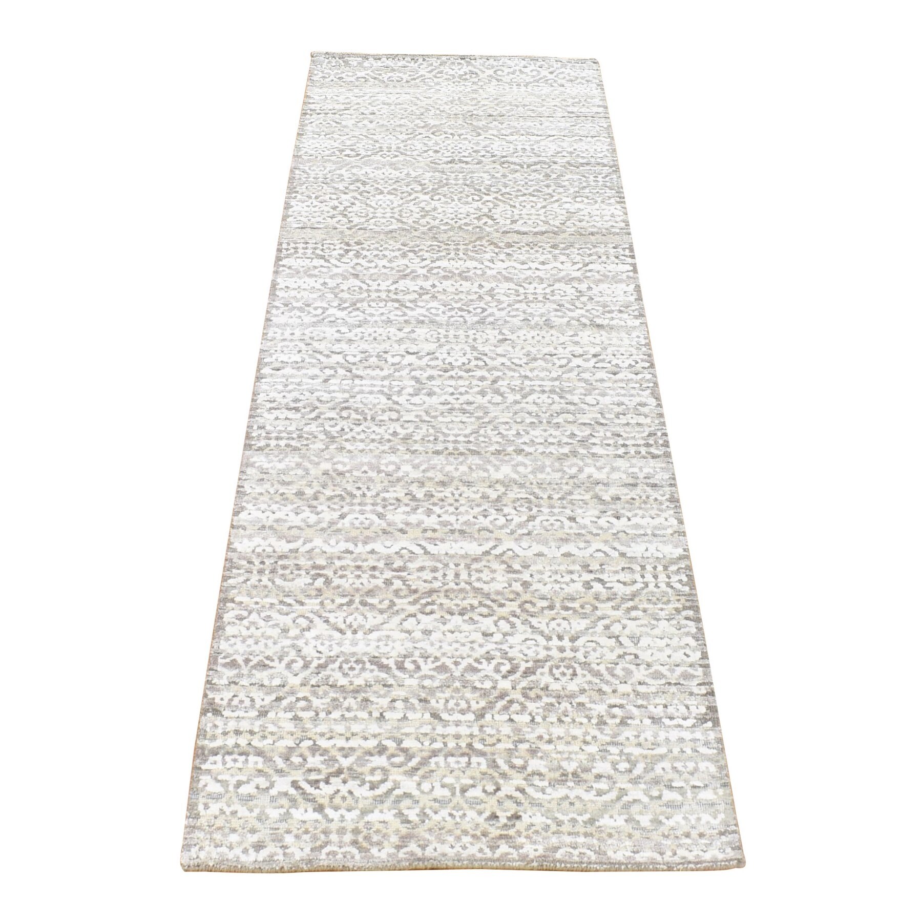 Hand Knotted Ivory Modern and Contemporary with Wool & Silk Oriental Rug (2'8" x 8'2") - 2'8" x 8'2"