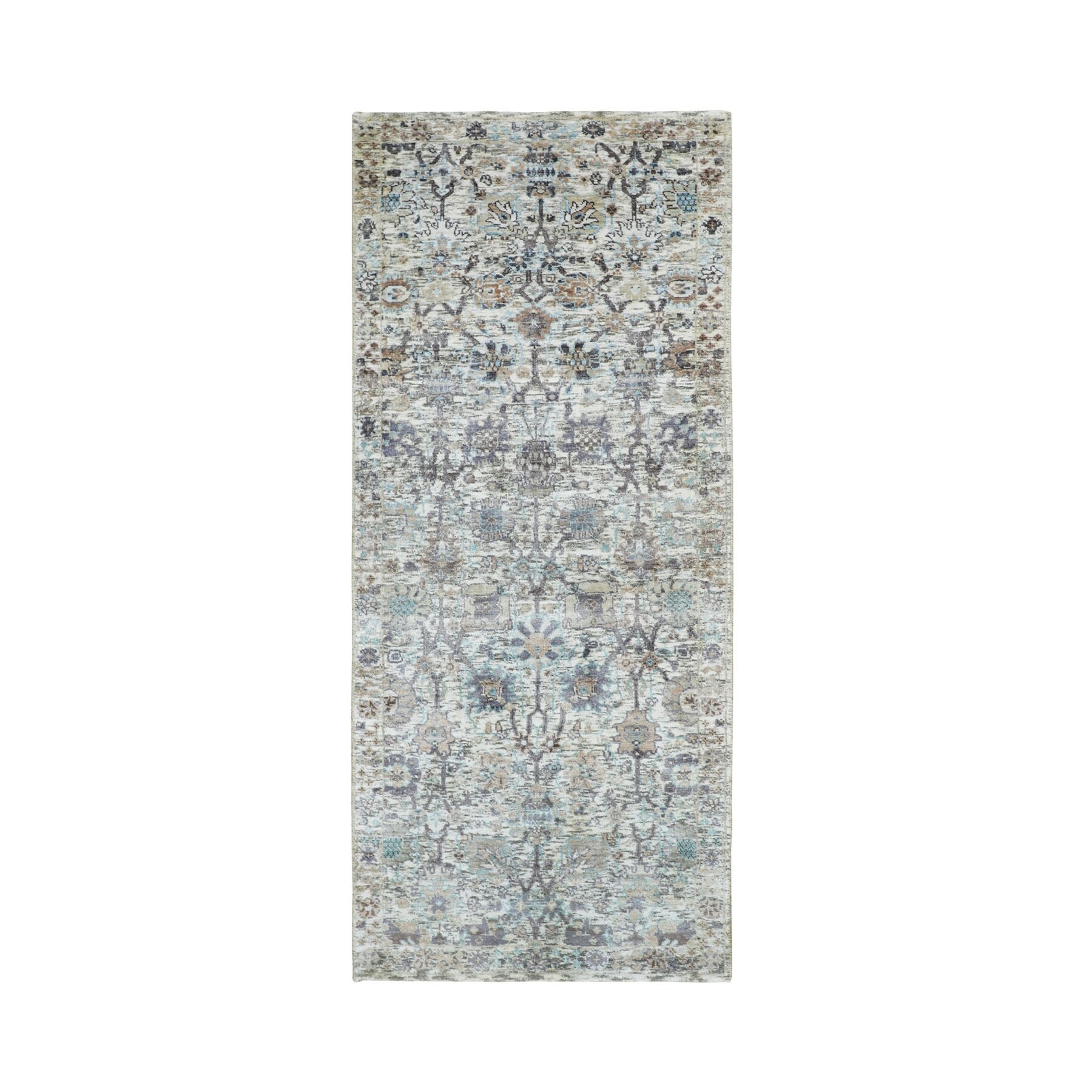 Hand Knotted Blue Transitional with Wool & Silk Oriental Rug (2'6" x 6') - 2'6" x 6'
