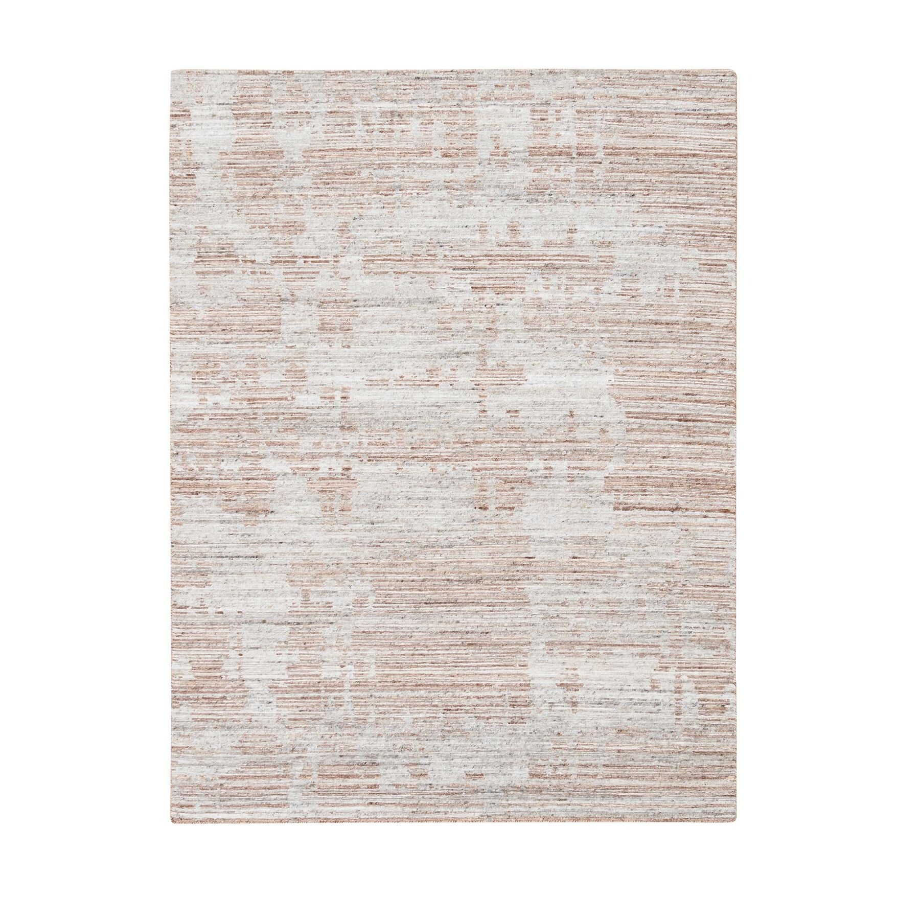 Hand Knotted Ivory Modern and Contemporary with Wool & Silk Oriental Rug (5'4" x 7'7") - 5'4" x 7'7"