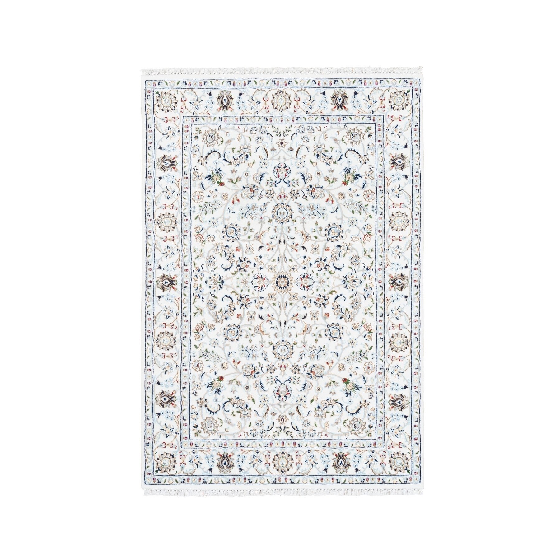 Hand Knotted Ivory Fine Oriental with Wool & Silk Oriental Rug (3'9" x 6') - 3'9" x 6'