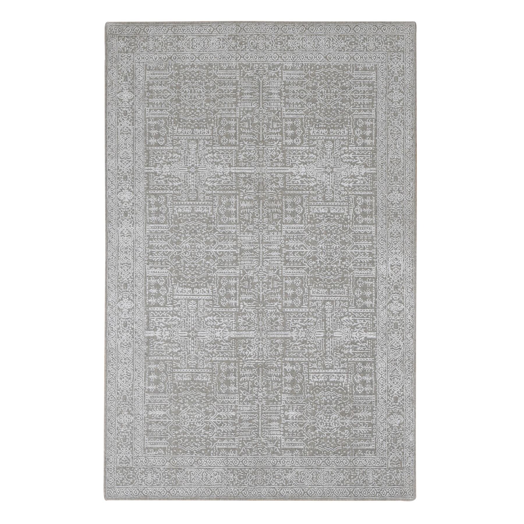 Hand Knotted Grey Modern and Contemporary with Wool & Silk Oriental Rug (5'9" x 9') - 5'9" x 9'