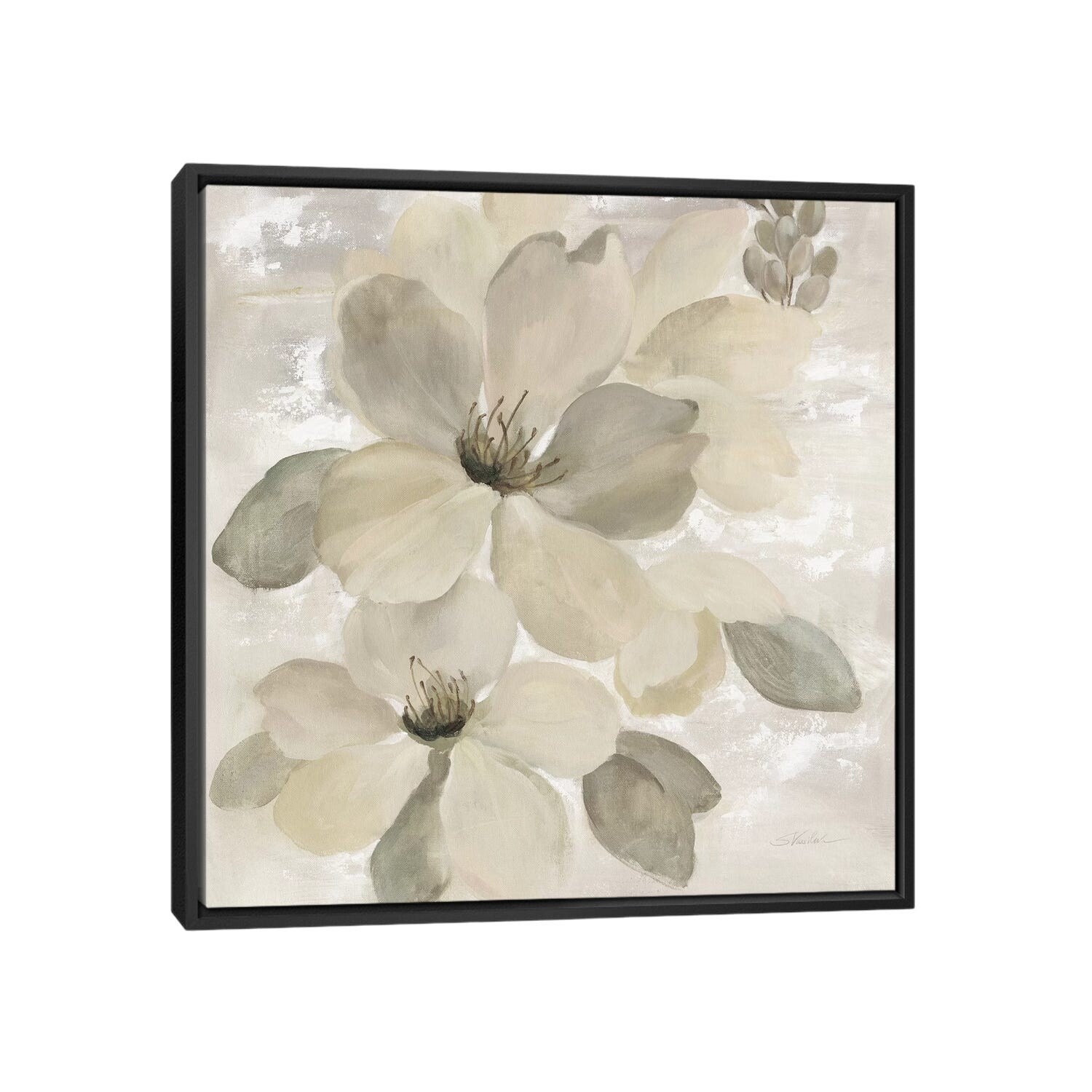 iCanvas "White On White Floral II" by Silvia Vassileva Framed Canvas Print