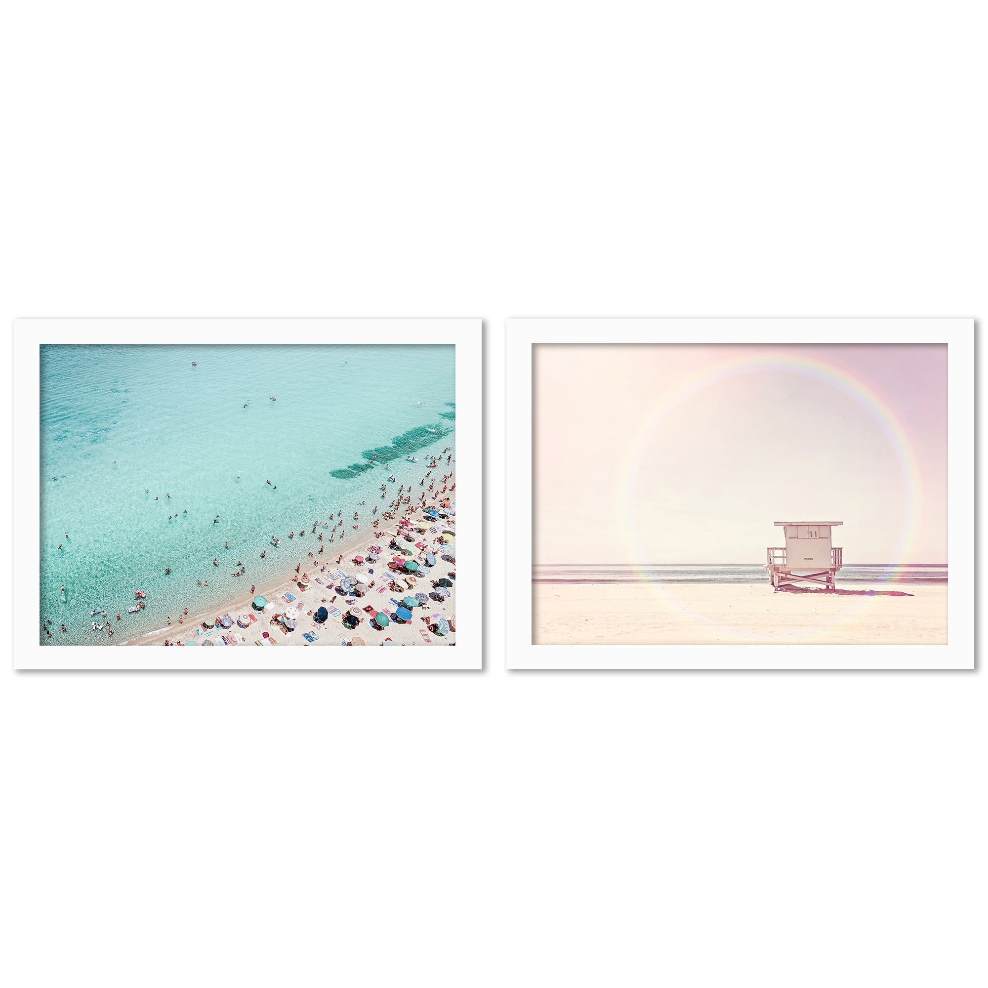 Busy Beach by Sisi and Seb 2 Piece White Framed Print Wall Art Set