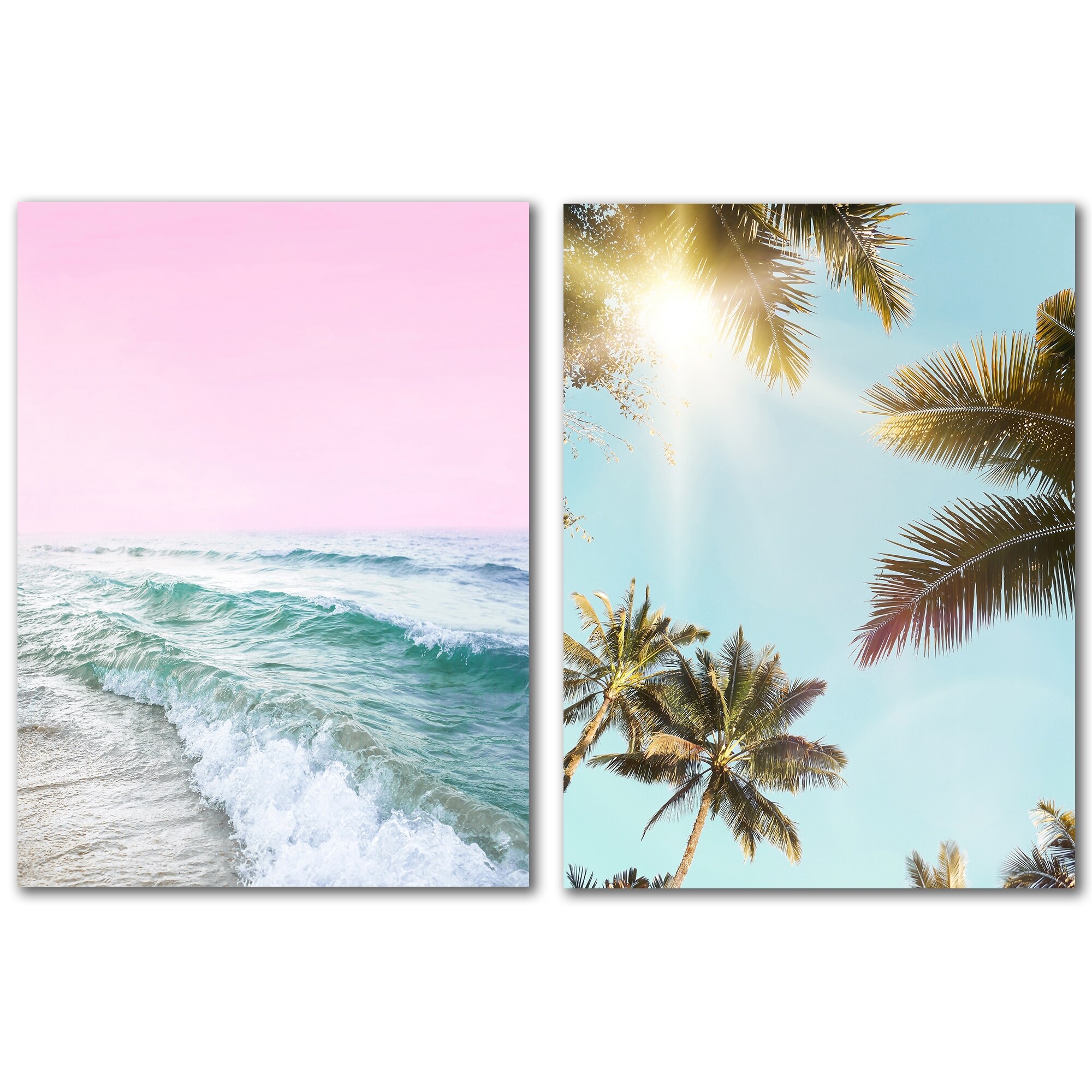 Pink Sky Ocean by Sisi and Seb 2 Piece Wrapped Canvas Wall Art Set