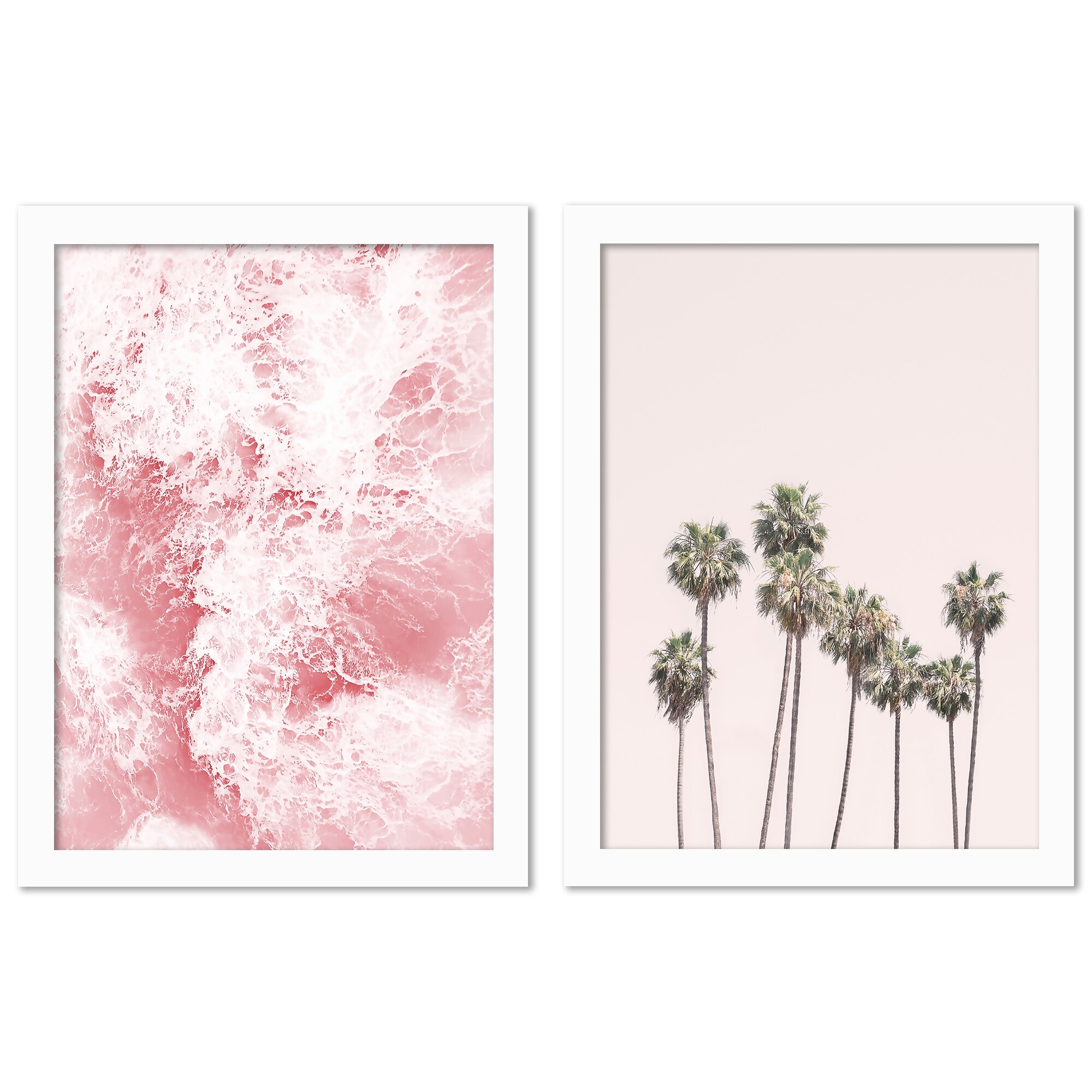 Pink Ocean by Sisi and Seb 2 Piece White Framed Print Wall Art Set