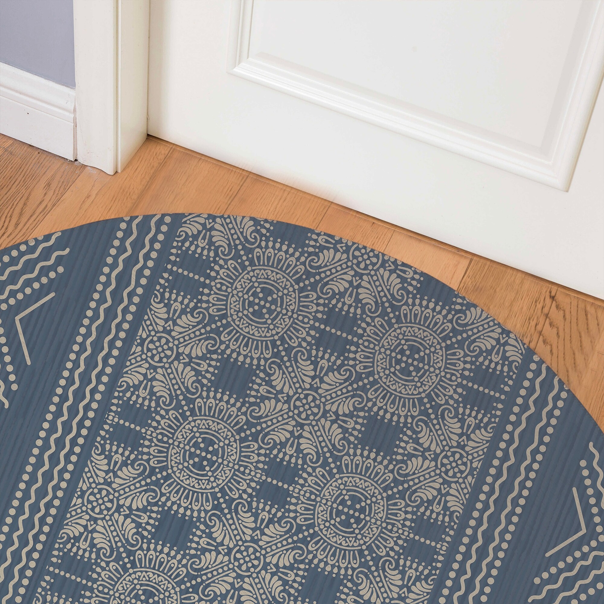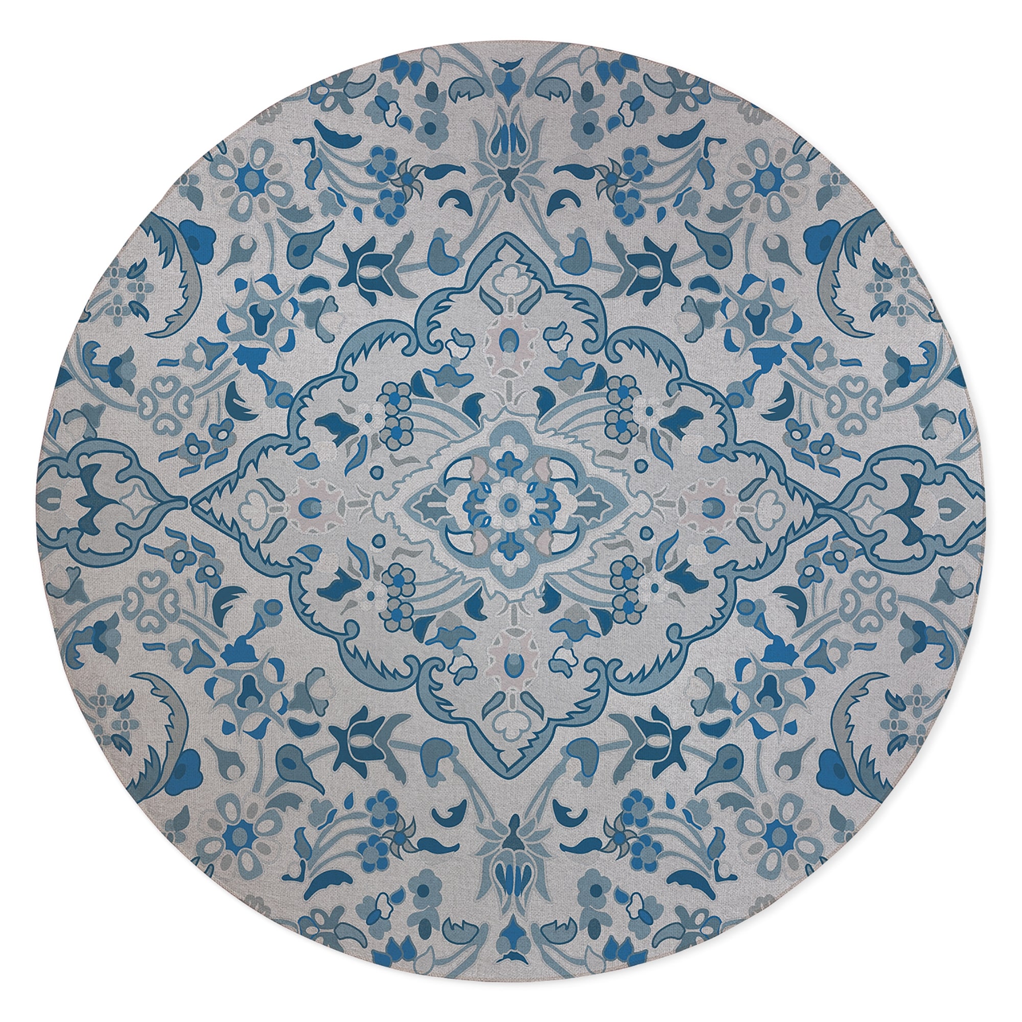 HomeRoots 5'x8' Slate Blue Floral Area Rug - 5' Octagon