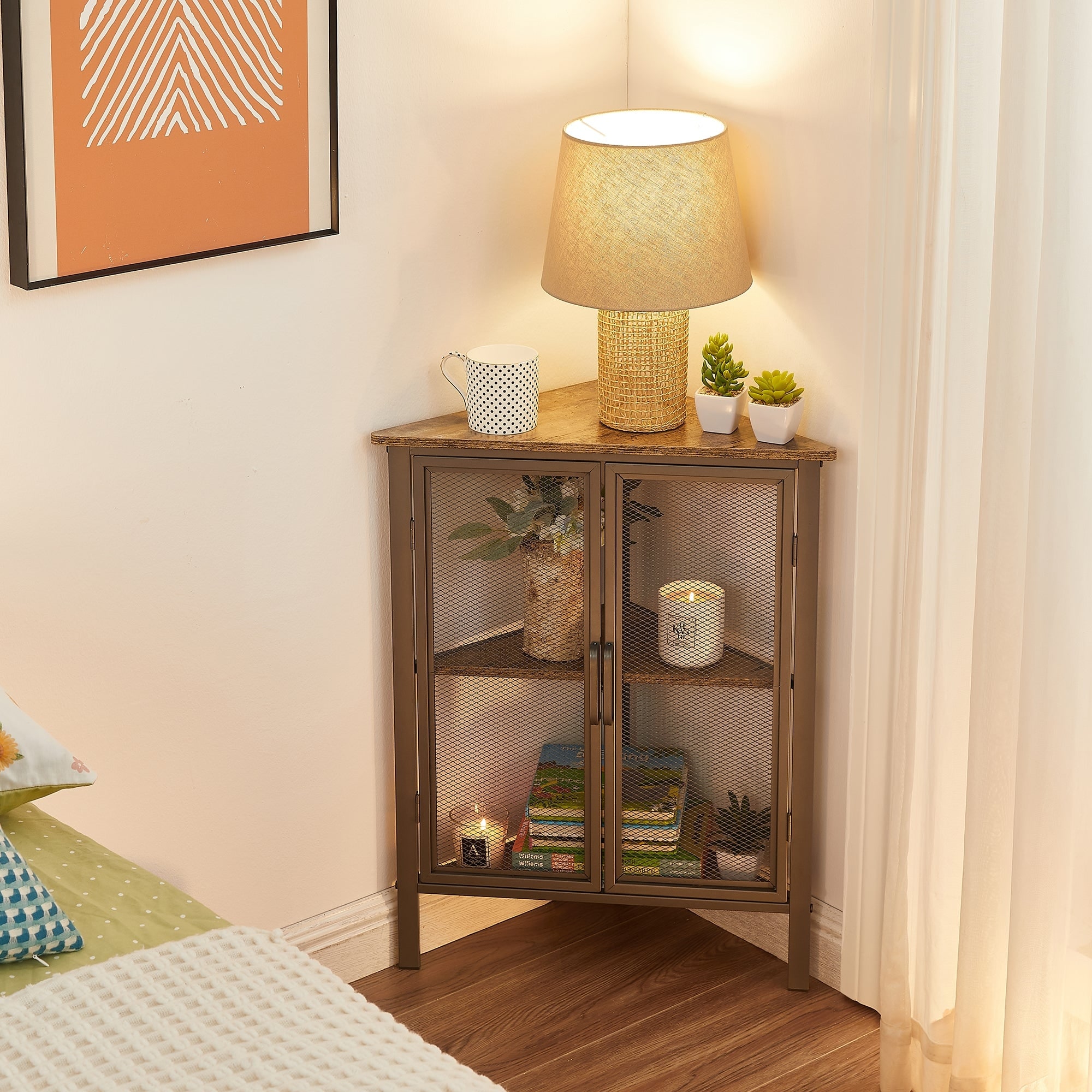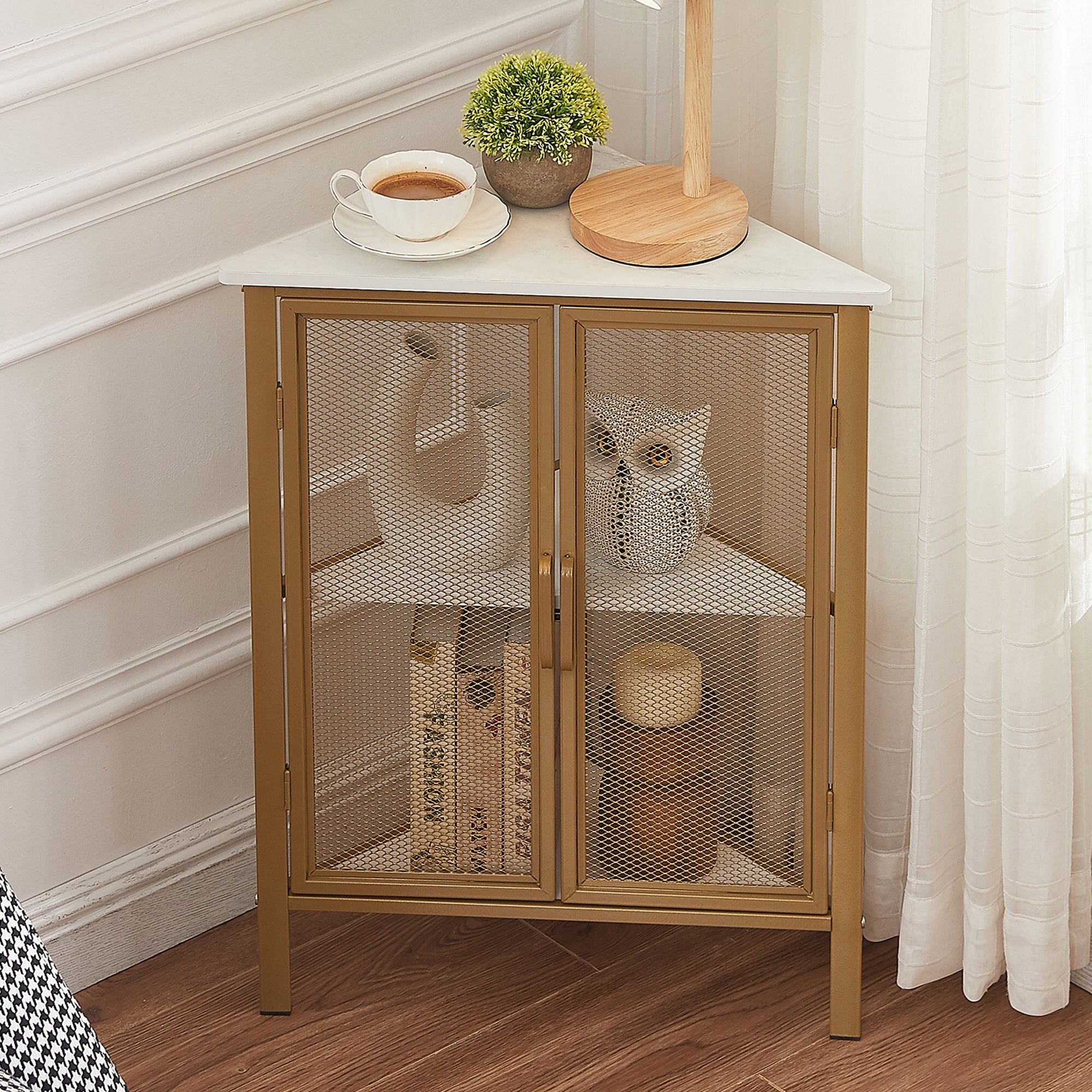 VECELO, Triangular Corner Cabinet with 3-tier Storage Shelves for Small Spaces (1PCS/2PCS)