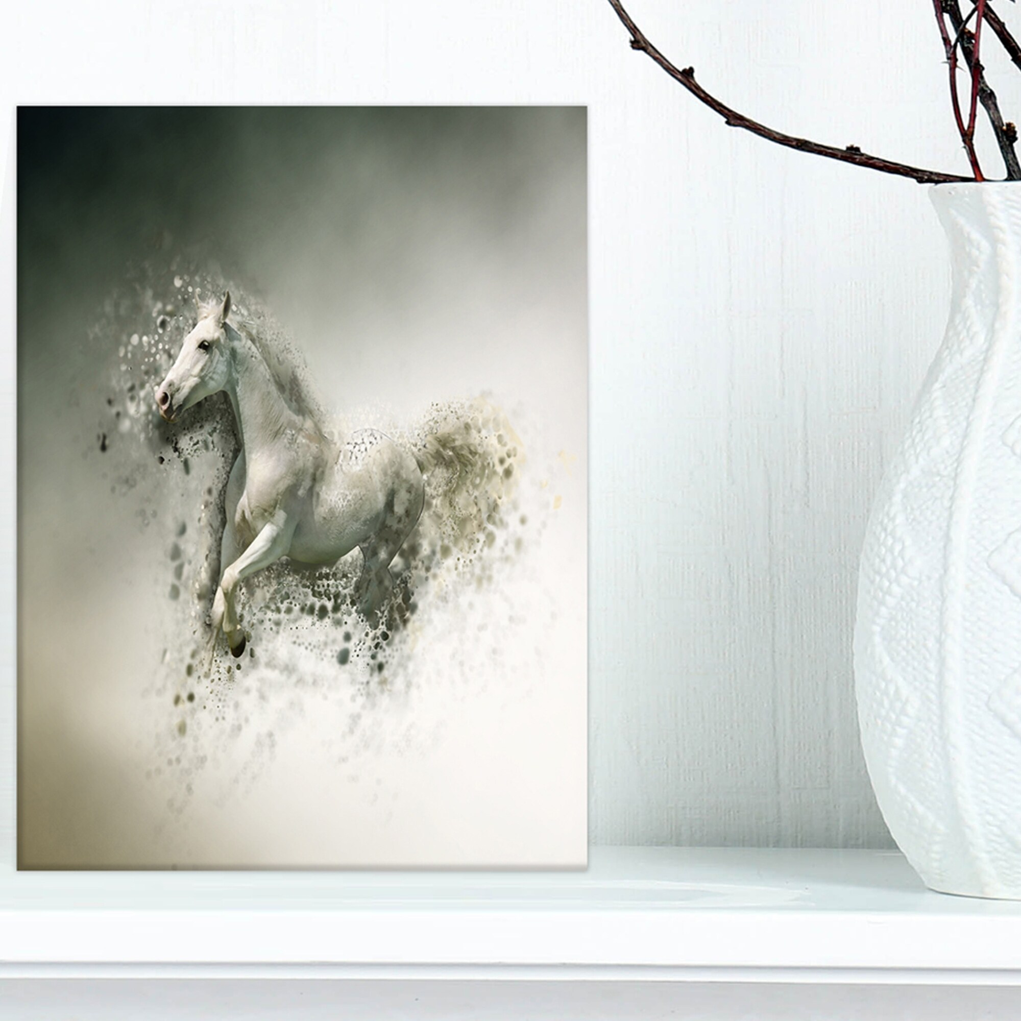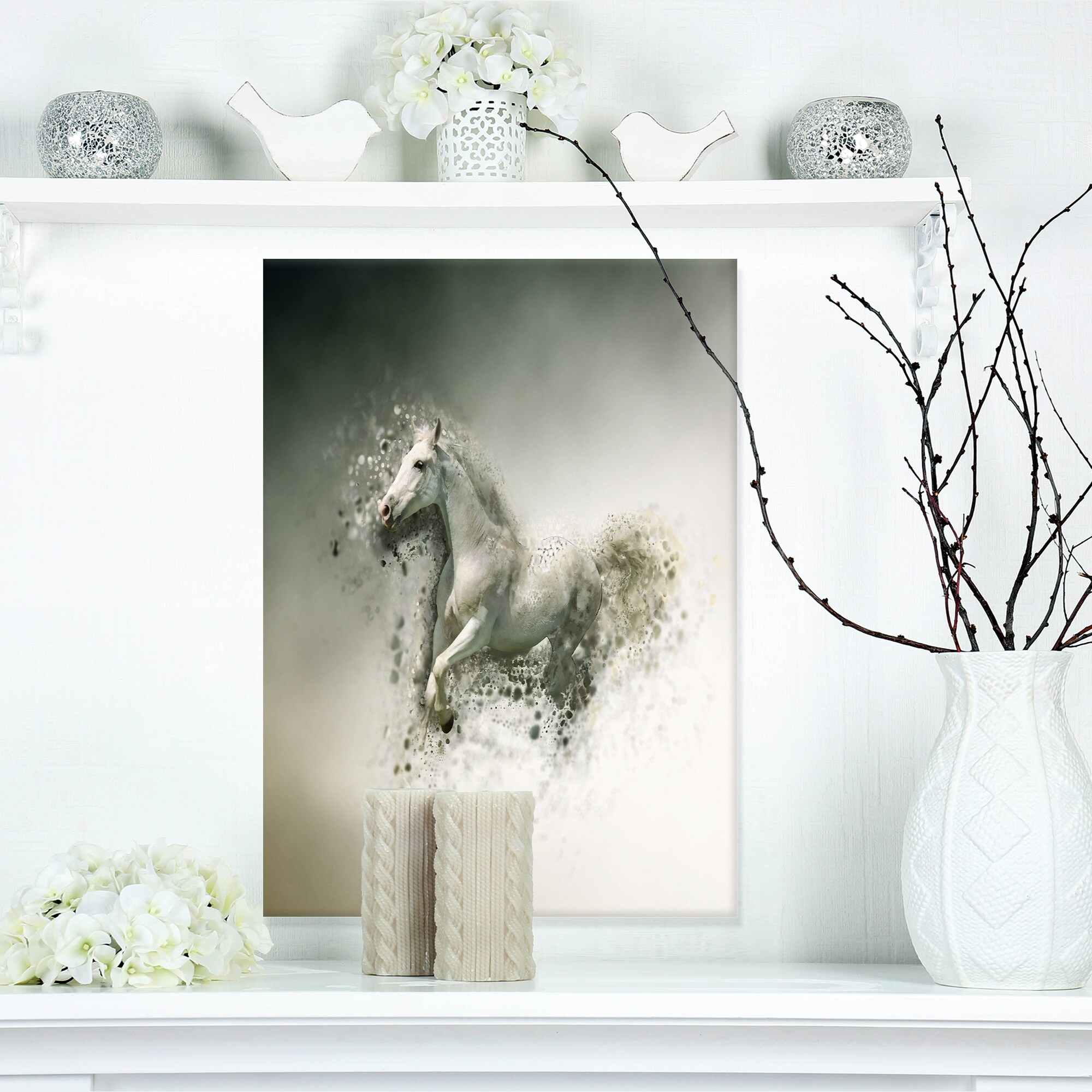 Designart "Smart White Horse Running" Large Animal Art on Canvas