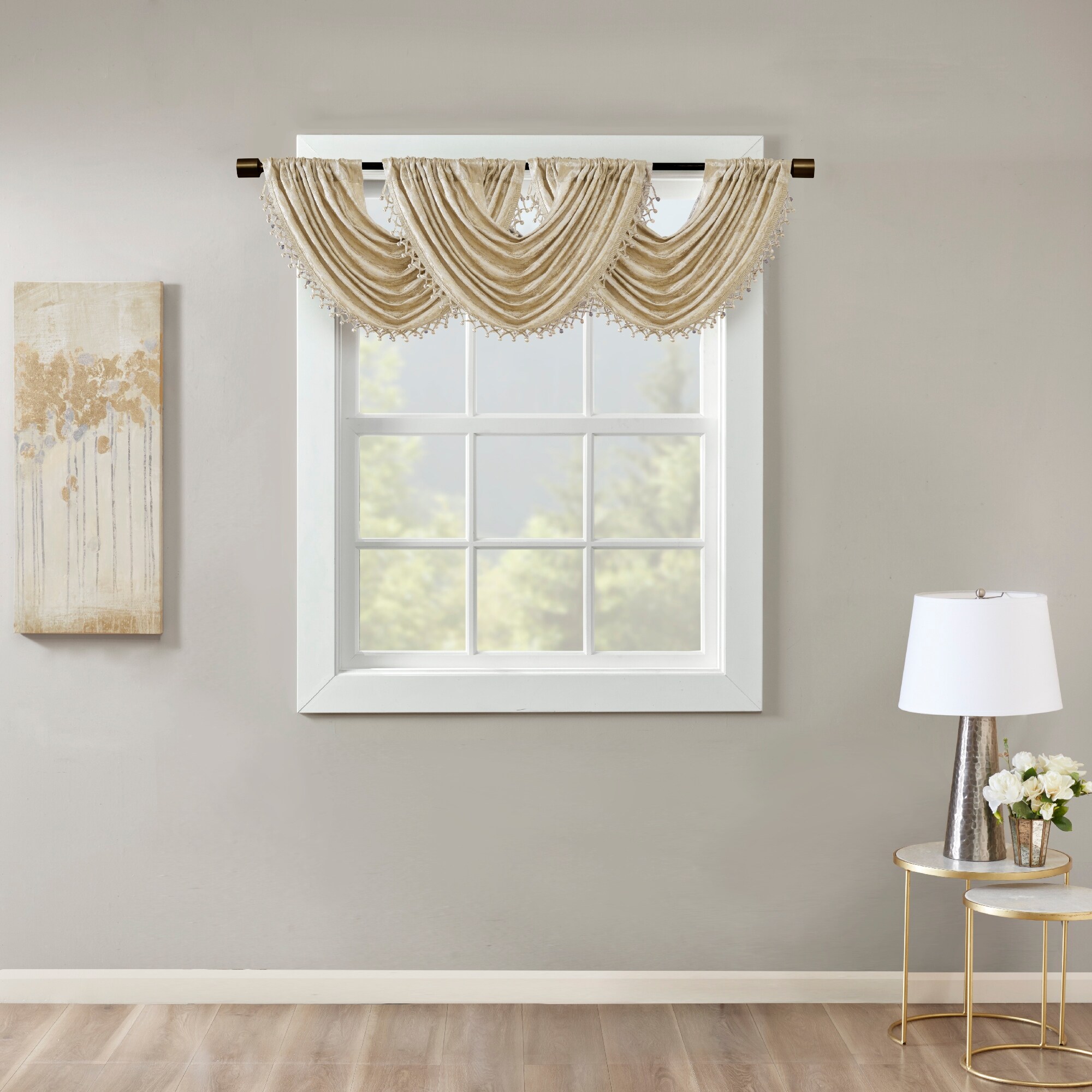 SunSmart Odessa Marble Jacquard Rod Pocket Valance Embellished Trim - 46 x 38"