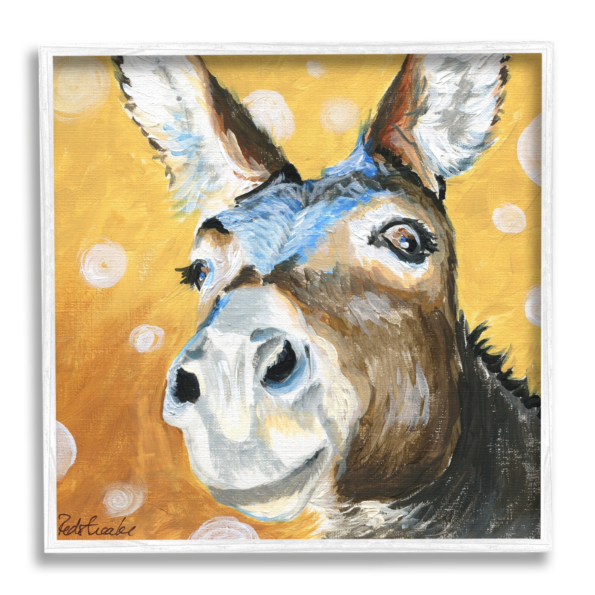 Stupell Industries Smiling Donkey Animal Painting Casual Circle Pattern Framed Wall Art, Design by Jennifer Redstreake
