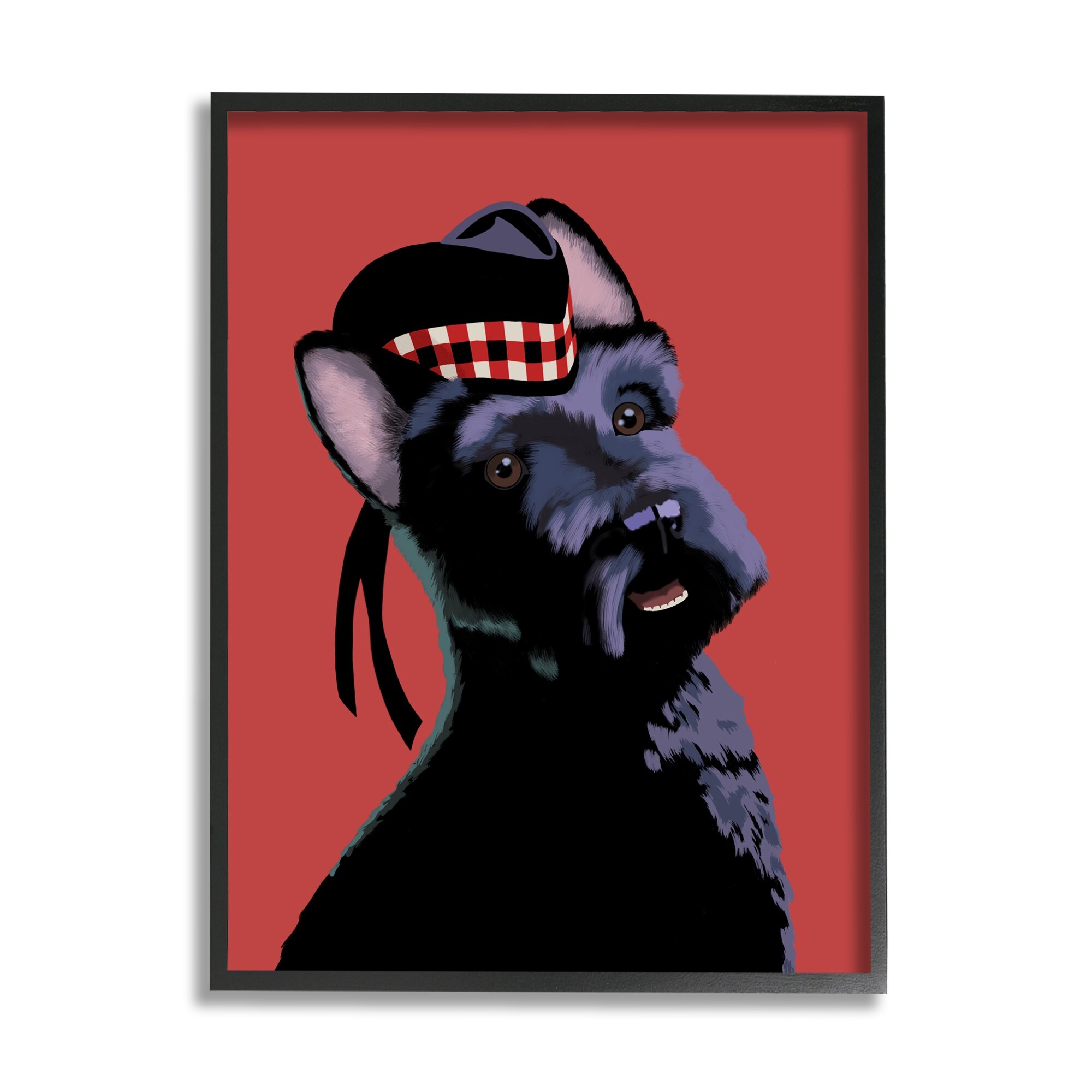 Stupell Smiling Scottish Terrier in Red Plaid Hat Framed Wall Art