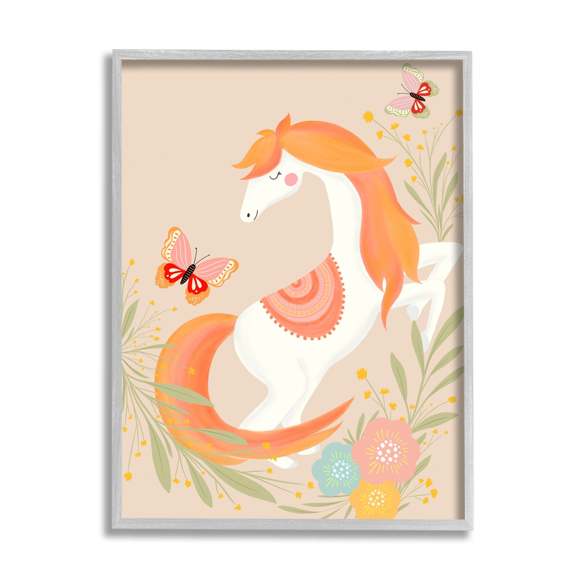 Stupell Industries Smiling Horse Floral Nature Butterflies Framed Giclee Texturized Wall Art, Design By Nikita Jariwala