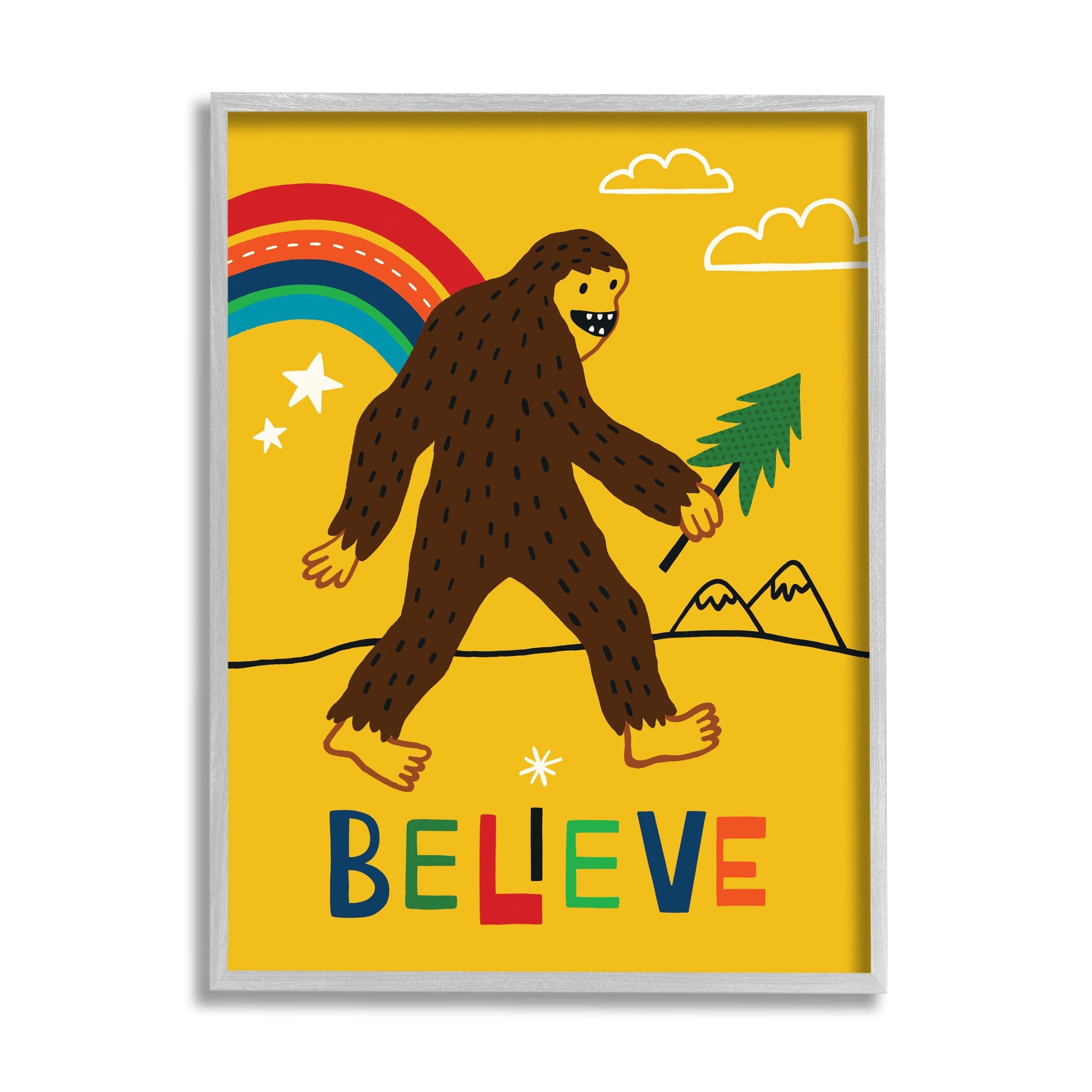 Stupell Whimsical Believe Phrase Happy Smiling Big Foot Framed Wall Art