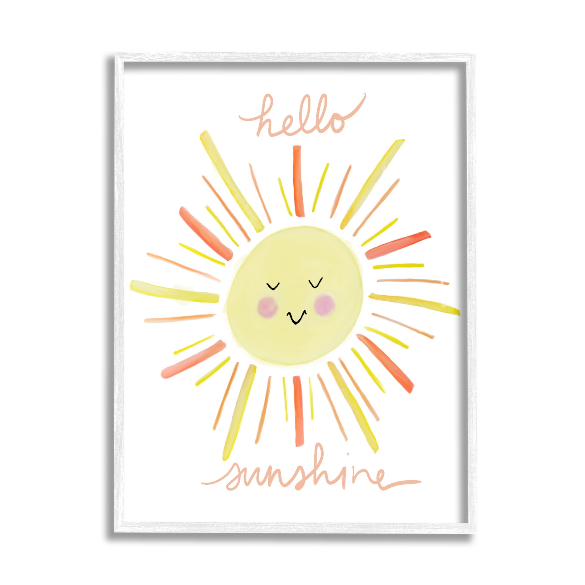 Stupell Hello Sunshine Endearing Smiling Sun Rays Cursive Framed Wall Art - Yellow