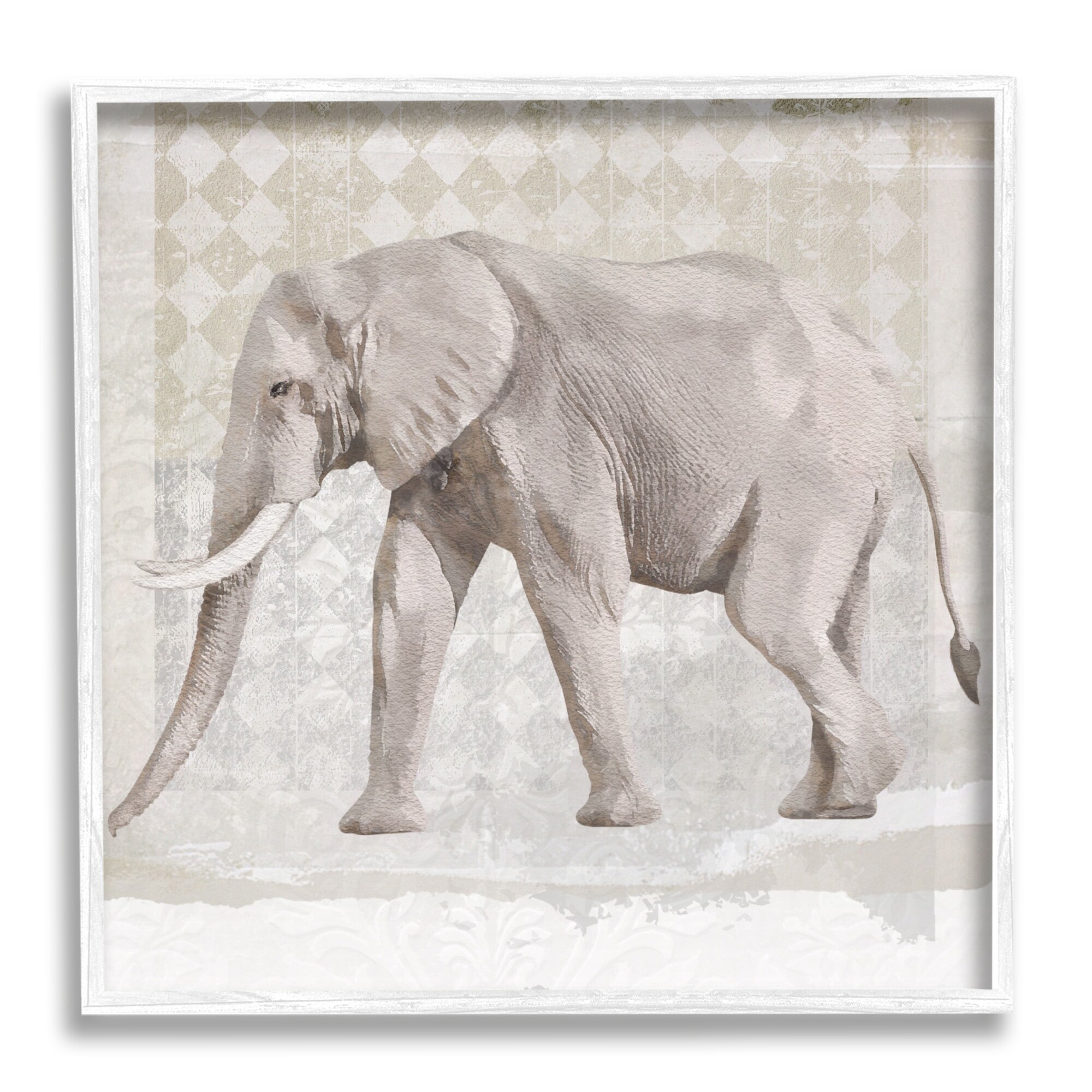 Stupell Industries Muted Geometric Elephant Pattern Framed Giclee Art by Karen Smith